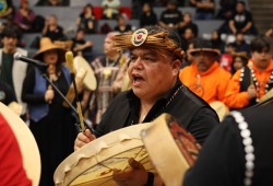 “If you feel emotional, it’s because the drums are calling you. It’s in your DNA. If you feel like dancing, get up and dance,” said Andrea Burrell, president of the Nisga'a Ts'amiks Vancouver Society and Nisga’a dancer since 2006.