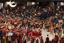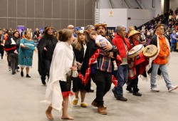 Like a fog horn guiding ships through ocean waves, the deep sound of a conch shell called dancers to the floor as the slow, steady beat of a drum group reverberated off Vancouver’s PNE Forum walls.