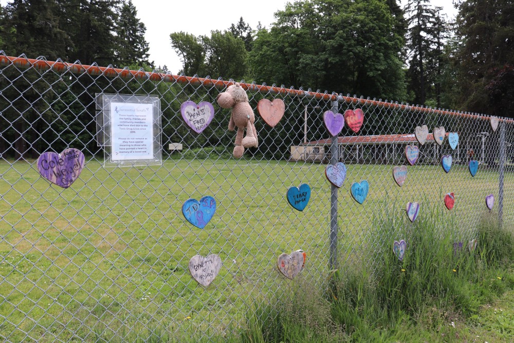 There is a heart fence in Port Alberni that memorializes some of the loved ones who have died due to the illicit drug supply in the past few years. The Heart Project features brightly coloured wooden hearts hanging from a chain-link fence at Dry Creek Park off of 4th Avenue.