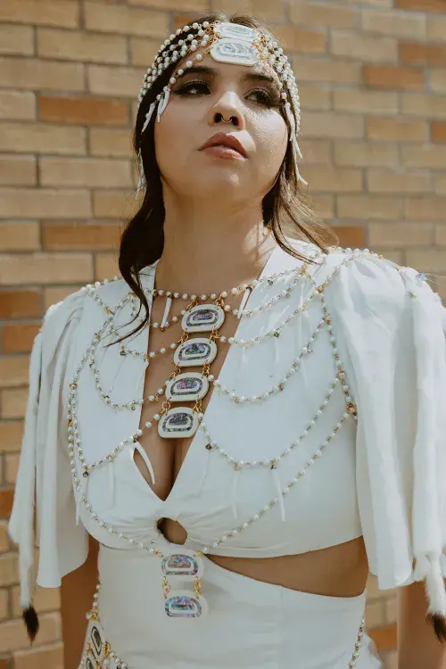 She noted that the round Indigenized shapes added to the dress represented divine feminine energy.