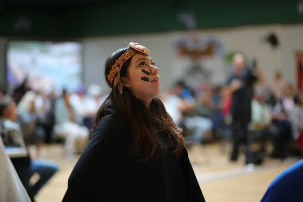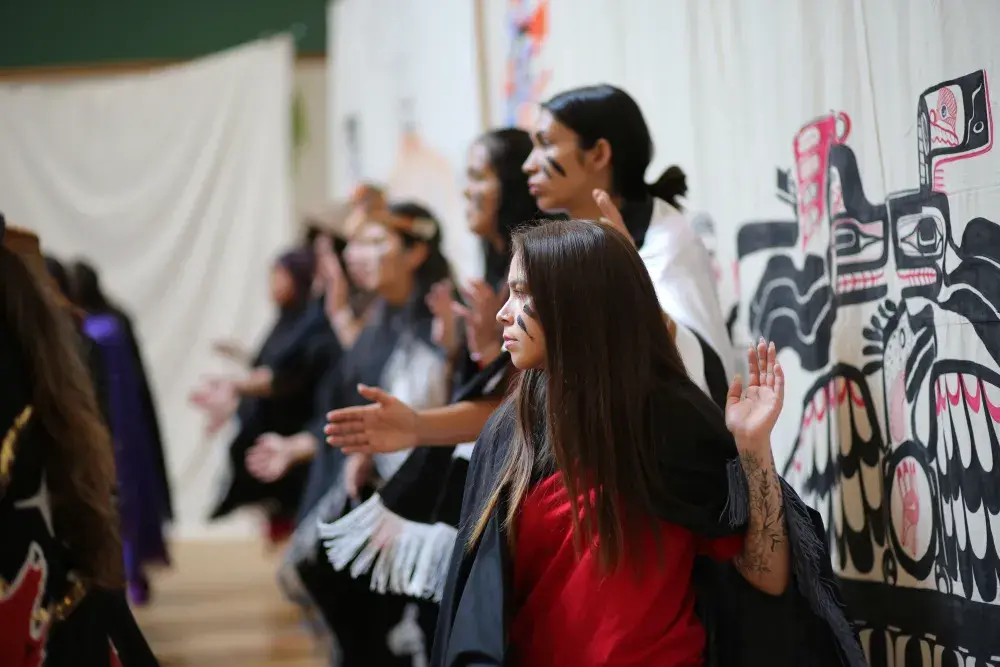 Inspiration for the structure’s design came from the remains of the ancient village and fortress of Kiixʔin on the coast of Barkley Sound. Kiixʔin is designated a National Historic Site for demonstrating continuous occupation in the area for almost 3,000 years, according to Parks Canada. The site has been unoccupied since the 1880s, but was once a central settlement for Huu-ay-aht people.