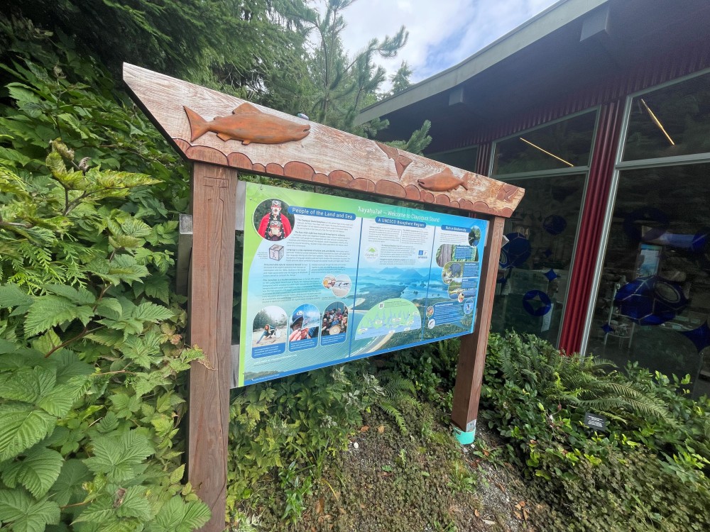 CBT also allocated a portion of the grant funding to each of the five Nuu-chah-nulth Nations within the UNESCO biosphere region (hiškʷiiʔatḥ (Hesquiaht First Nation), ʕaaḥuusʔatḥ (Ahousaht), ƛaʔuukʷiʔatḥ (Tla-o-qui-aht First Nations), Yuułuʔiłʔatḥ (Ucluelet First Nation), and tukʷaaʔatḥ (Toquaht Nation), so they could create their own signage independently.