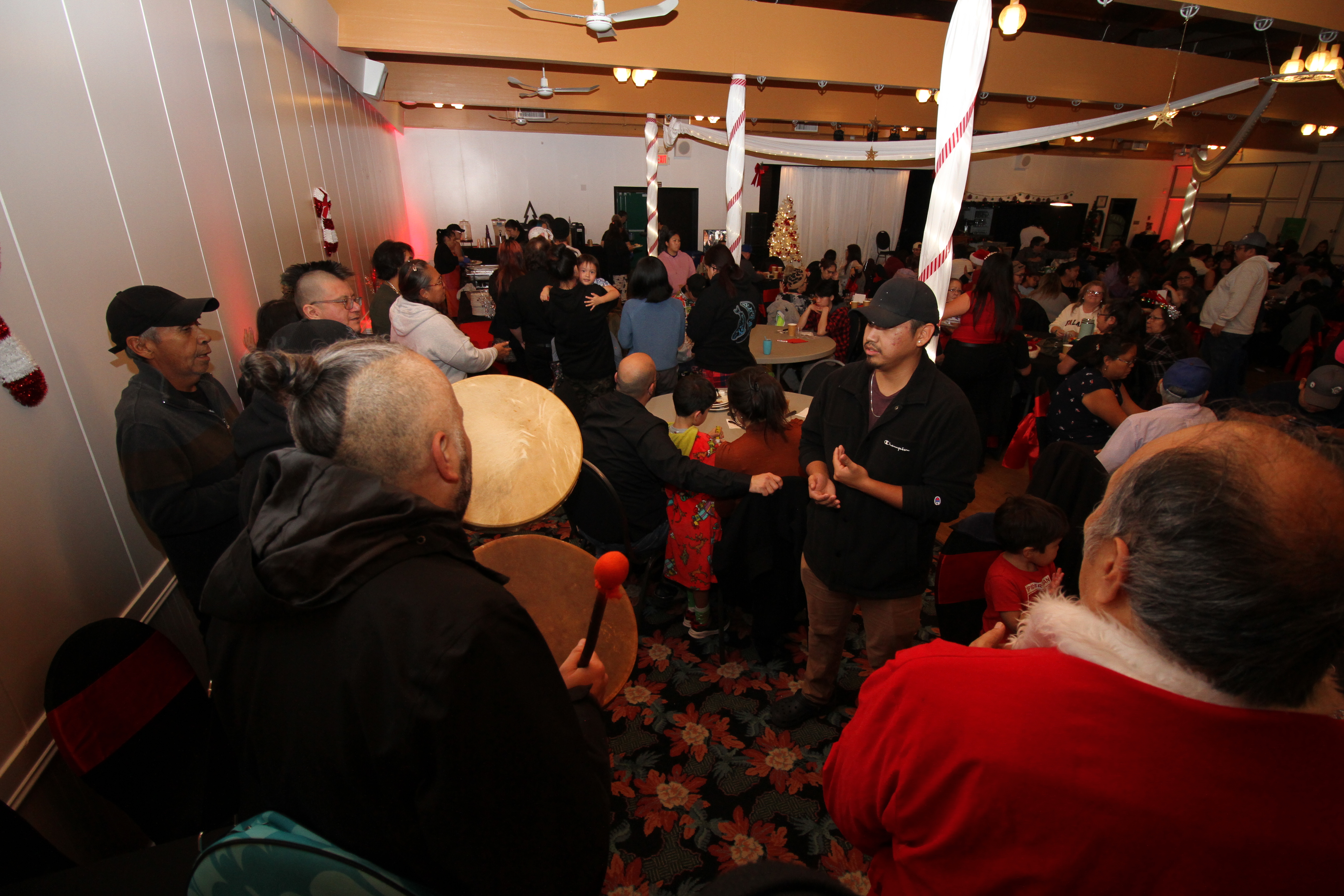 At least 220 came to fill the venue wall to wall on Dec. 10, the fourth of five such Urban Gatherings being hosted this month by the Nuu-chah-nulth Tribal Council. Besides the Christmas dinner and a chance to reconnect with family, participants were treated to door prizes, singing, cedar weaving, a photo booth, painted henna designs and a table for holiday crafts. Those interested in learning about their family history even had a chance to sit down and work on family trees through a project underway from Usma Nuu-chah-nulth Family and Child Services.
