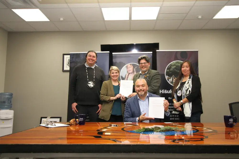 On Dec. 16 Huu-ay-aht leaders sat down to sign the yaaʔak̓apʷin (we are embracing) agreement with Minister of Children Jodie Wickens at the First Nation’s Port Alberni office. Effective on March 16, 2026, the agreement was developed to help guide child welfare decisions between the First Nation and the province. Language within yaaʔak̓apʷin specifies that Huu-ay-aht kids are to remain connected to their community and culture, while outlining that the First Nation will have “an enhanced involvement in decision making regarding their children.”