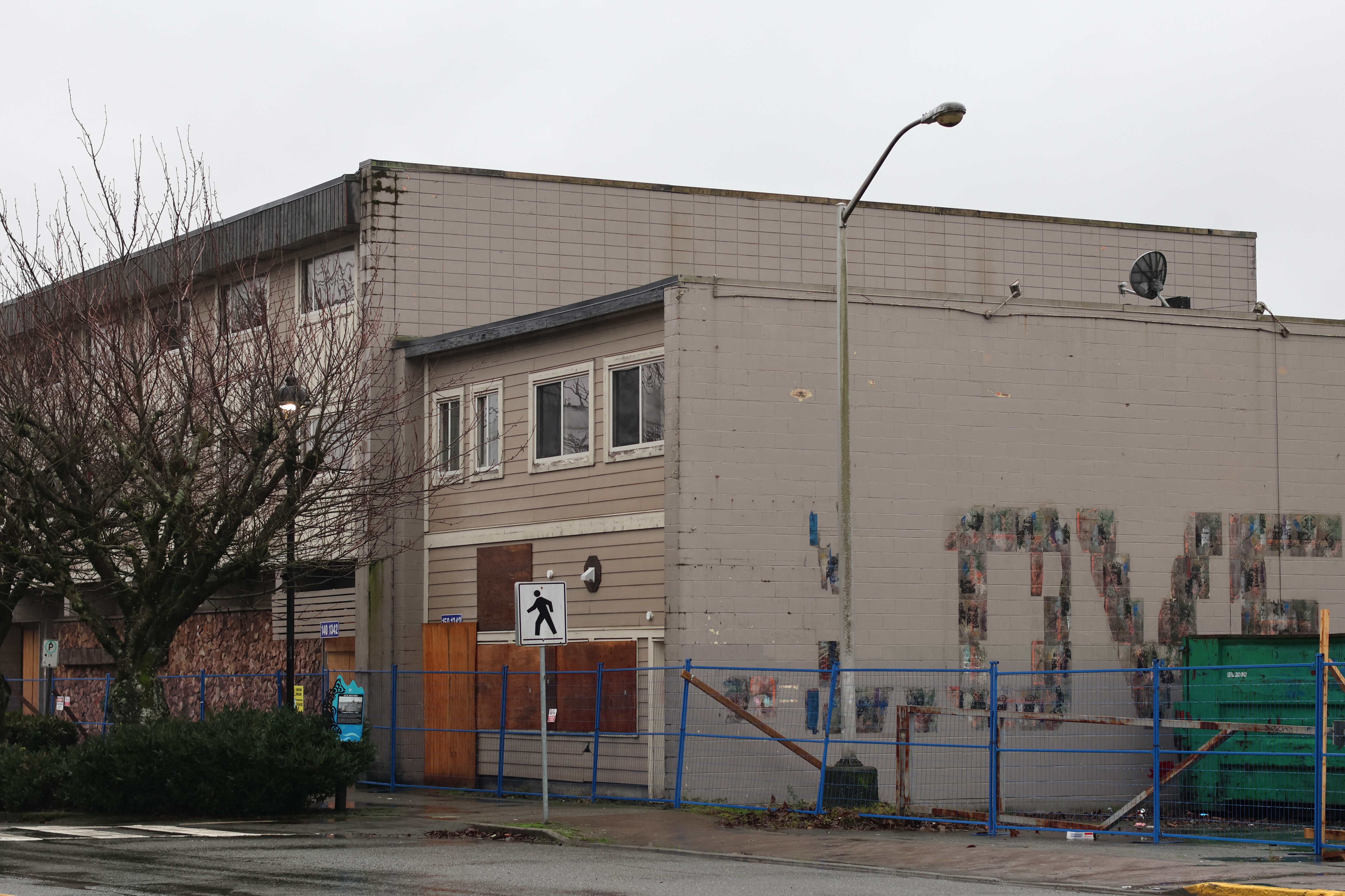 Campbell River’s Berwick by the Sea retirement community is lit up with holiday flair, while across the street a mural portraying the word L-O-V-E fades on the side of boarded up building that was once a lifeline for the homeless.