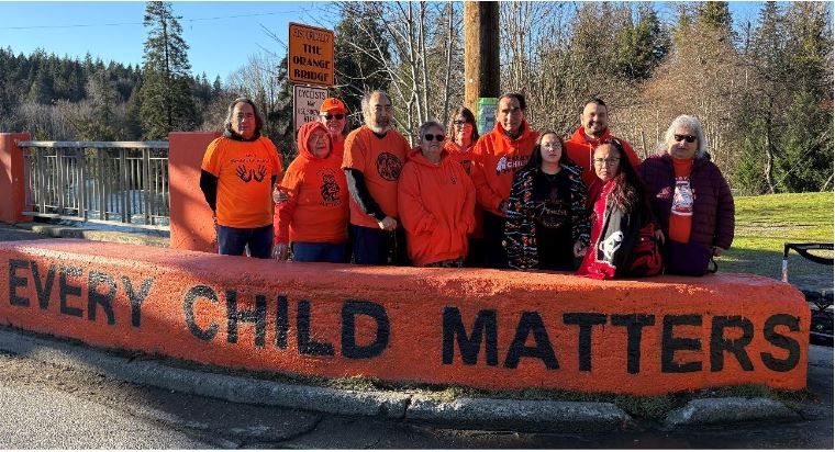 In 2022 the Tseshaht First Nation in partnership with the Ministry of Transportation and Transit painted barricades on each end of the Somass River Bridge orange, a color that has come to represent residential school survivors. Barricades on each end of the bridge were painted with the slogan ‘Every Child Matters’.