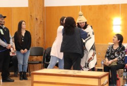 Chiefs that were there stood to show support for ƛiišinʔas in her new role. They came to ‘shake her hand’, to offer her money as she plans for her first big celebration, or for a trip to Dairy Queen, some joked.