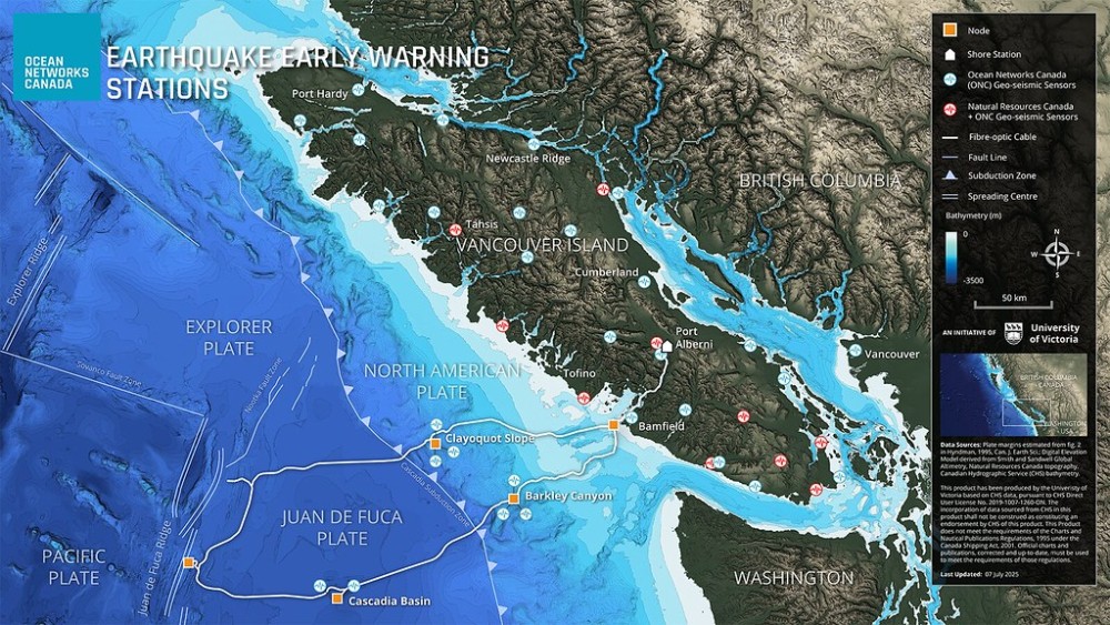 “One of the sites on the NEPTUNE system is at the junction of three tectonic plates,” said Pirenne. “The data collected there won’t necessarily improve earthquake alerts, but it will help scientists’ understanding of how and why earthquakes here occur, and could eventually support earthquake information messaging systems that help alert industry and critical infrastructure operators about oncoming earthquakes.”