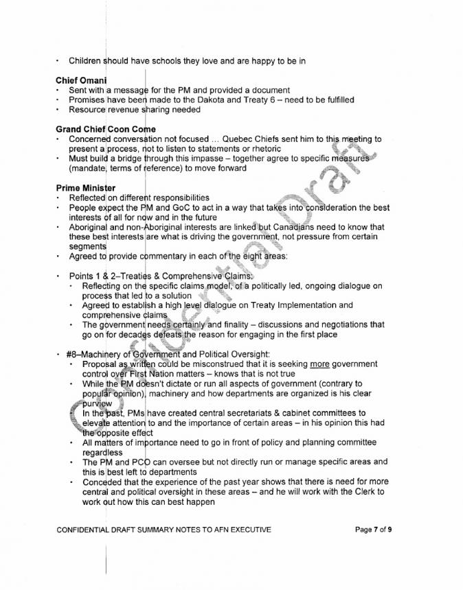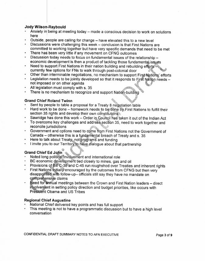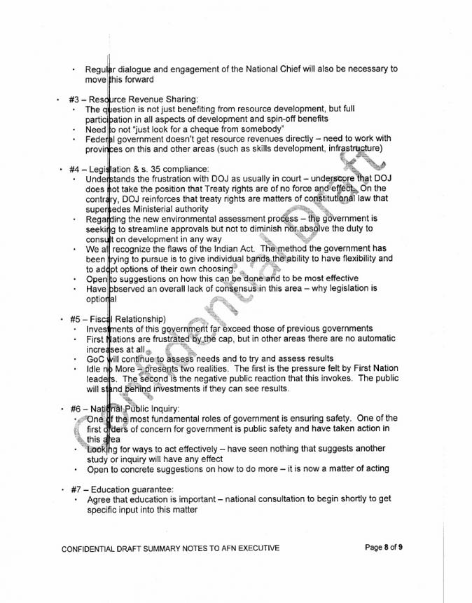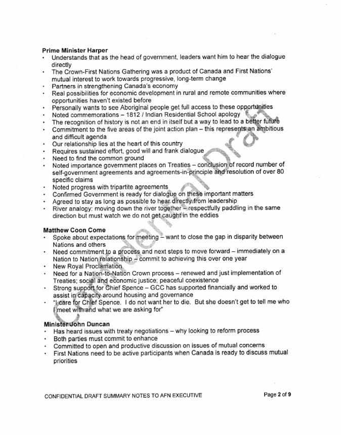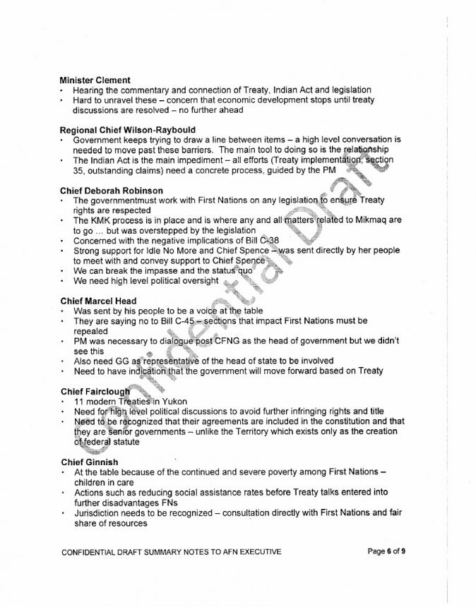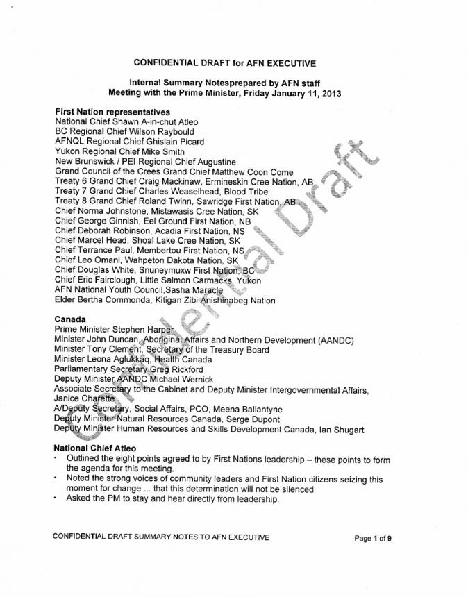 Confidential Documents from Jan. 11, 2013 AFN/Harper meeting shared on Twitter | Ha-Shilth-Sa Newspaper