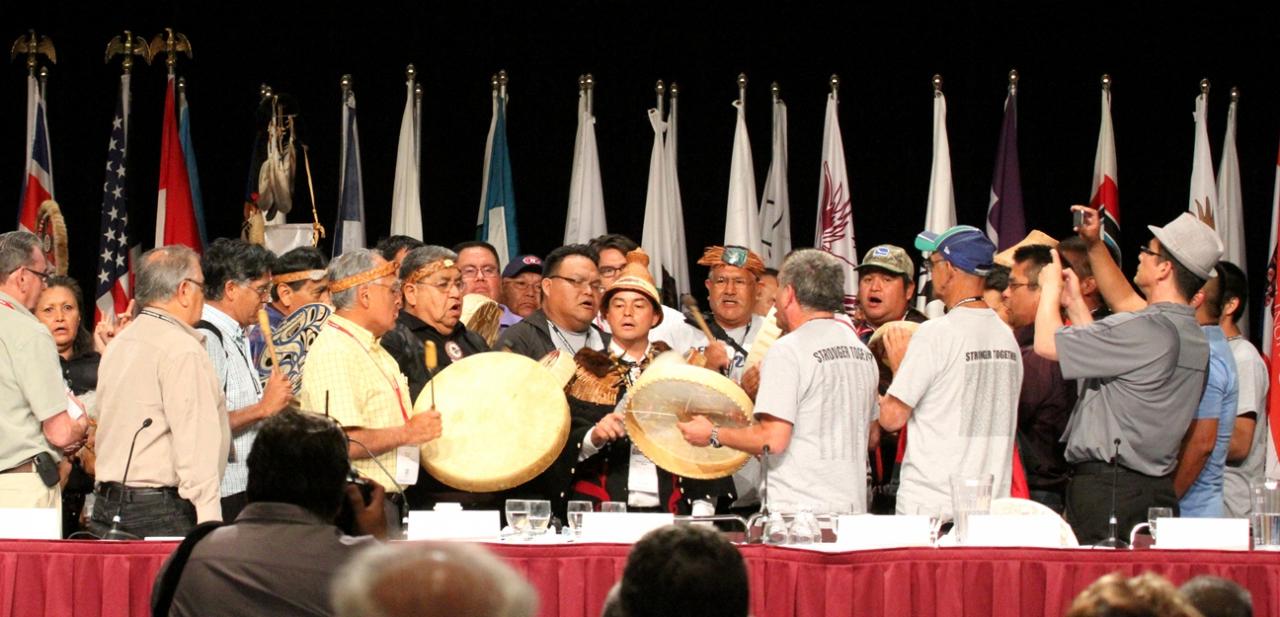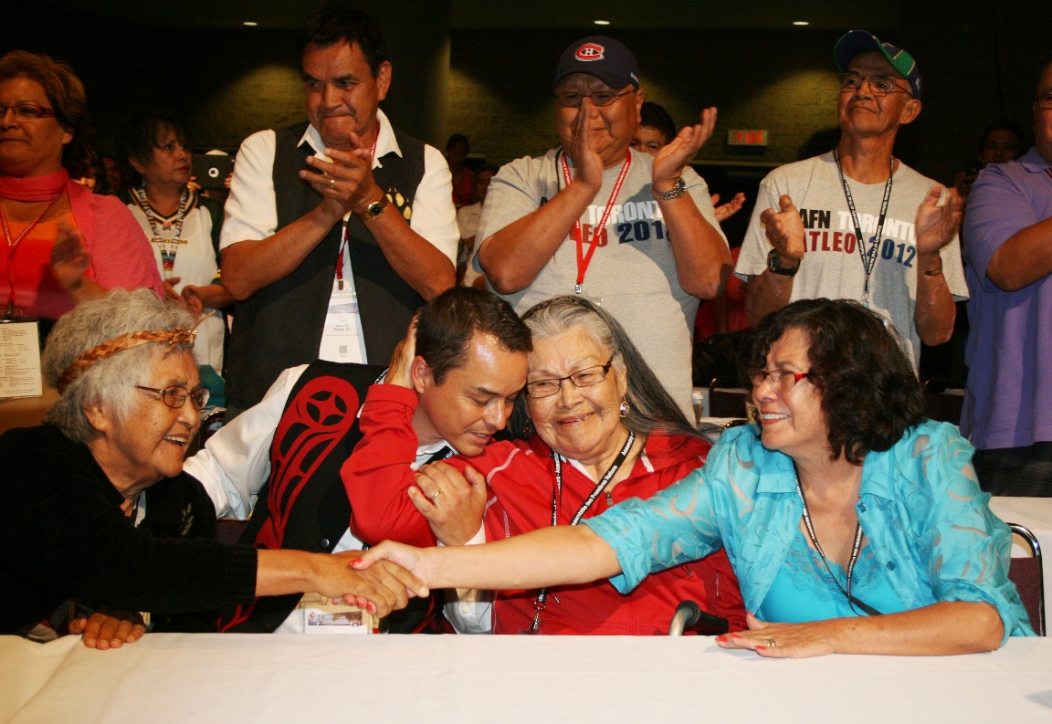 The Assembly of First Nations held its election for the position of national chief on July 18. Eight candidates entered the race, including incumbent Shawn A-in-chut Atleo, and over three voting rounds the chiefs whittled the numbers down to one. They chose to give A-in-chut a renewed mandate. This is the story of that day through photos. Details about what's happening in the photos can be seen by clicking on details while you are viewing the photo, or by clicking on the name of the photo.