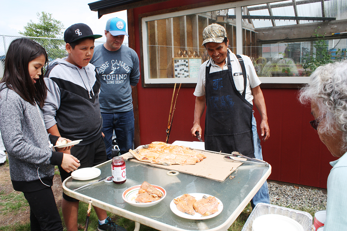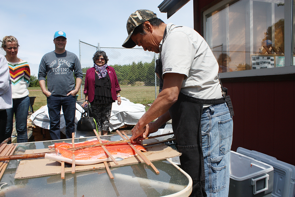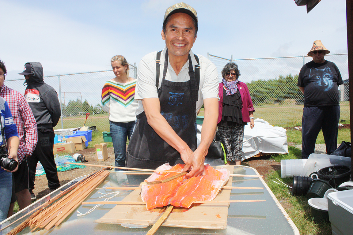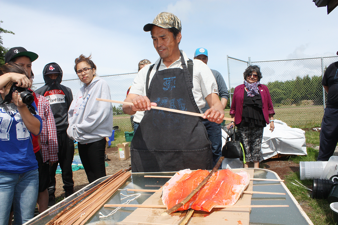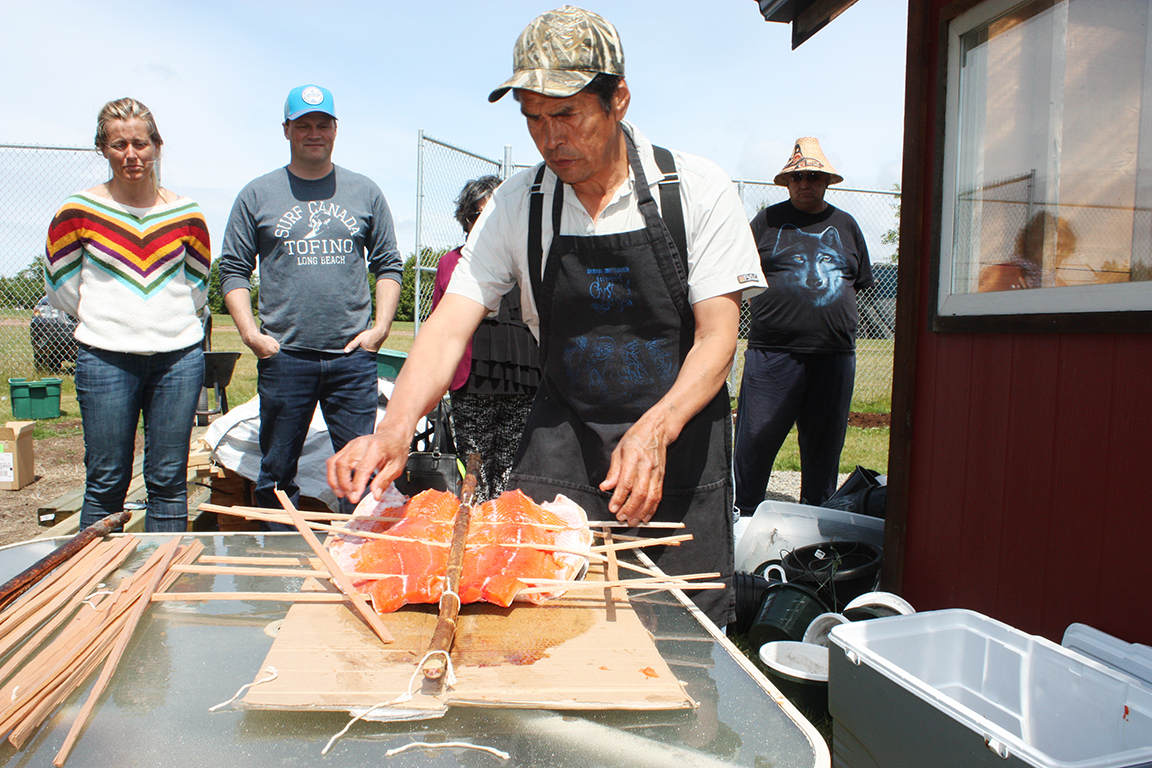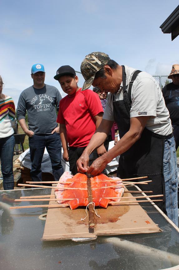 On June 8, Joe Martin of Tla-o-qui-aht gave a step-by-step demonstration on how to make tlup-chus (traditional barbecue salmon).
