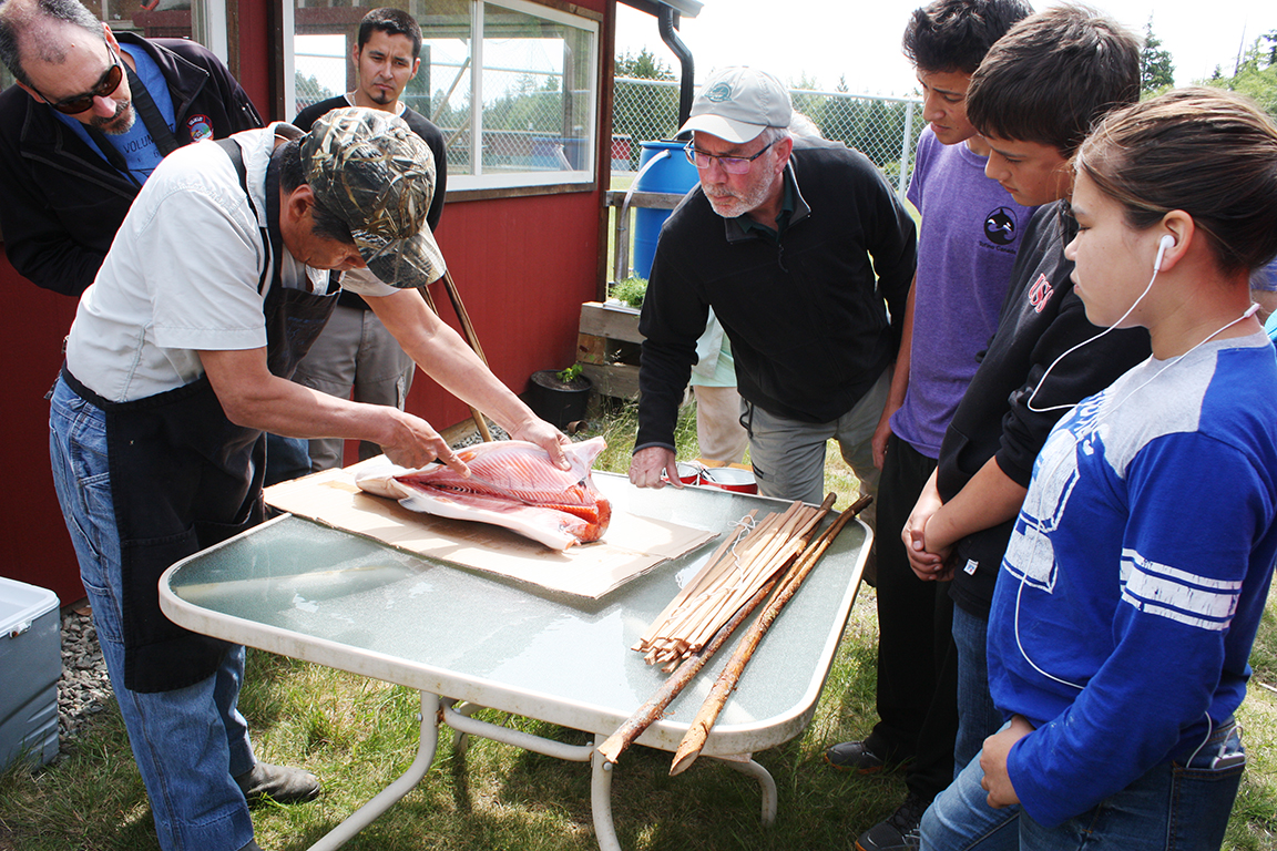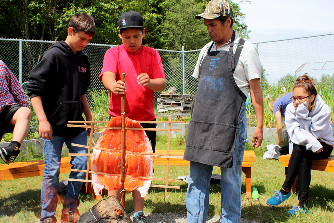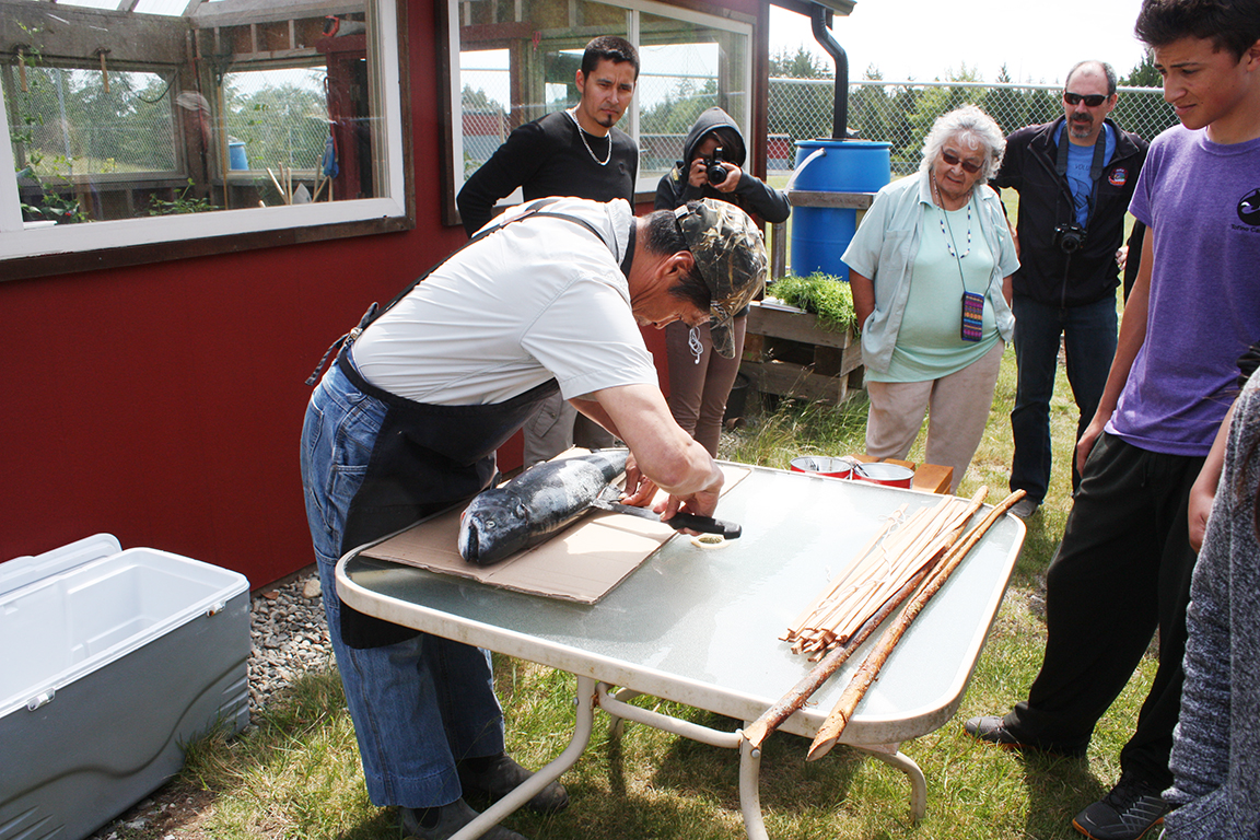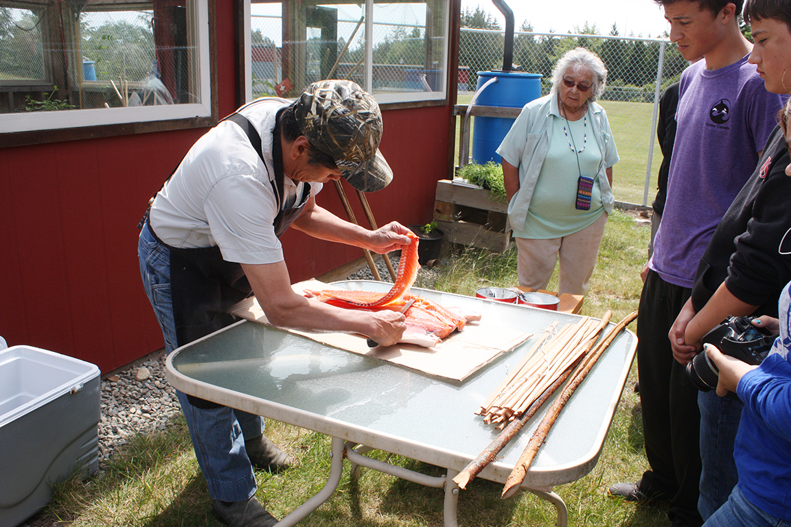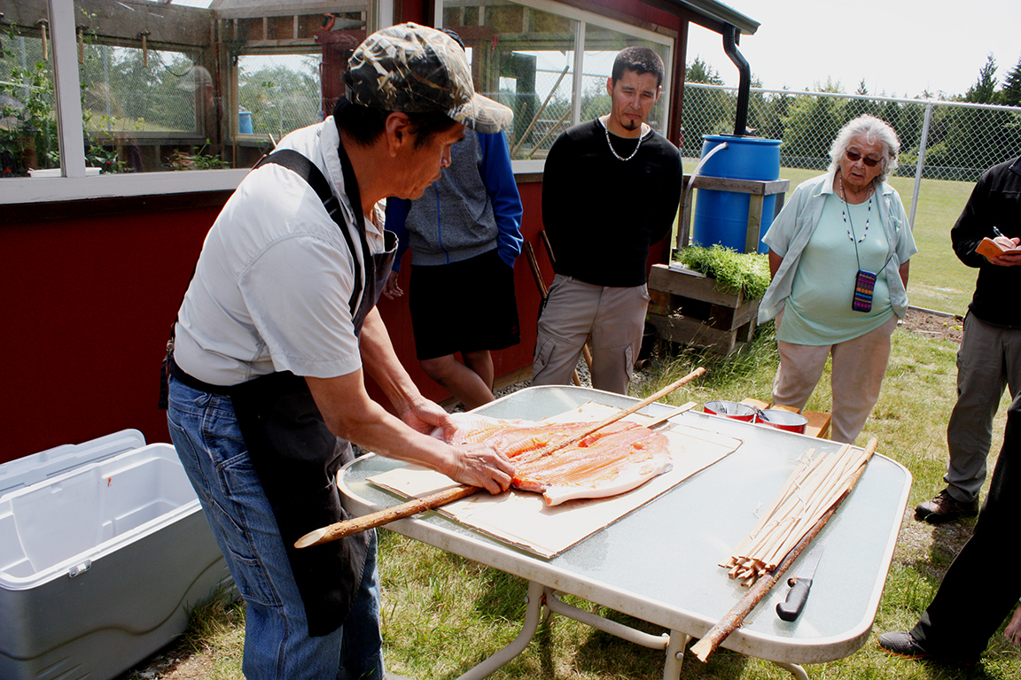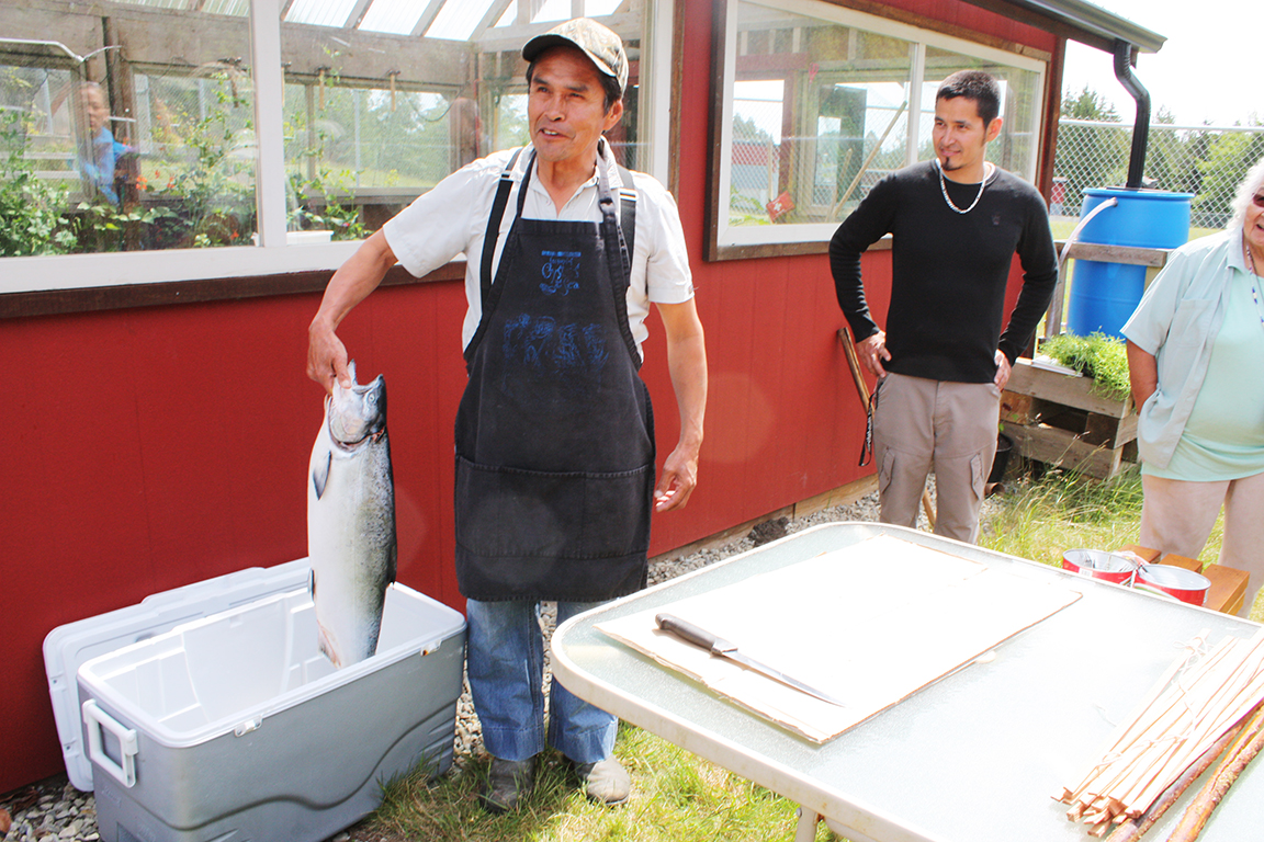On June 8, Joe Martin of Tla-o-qui-aht gave a step-by-step demonstration on how to make tlup-chus (traditional barbecue salmon).