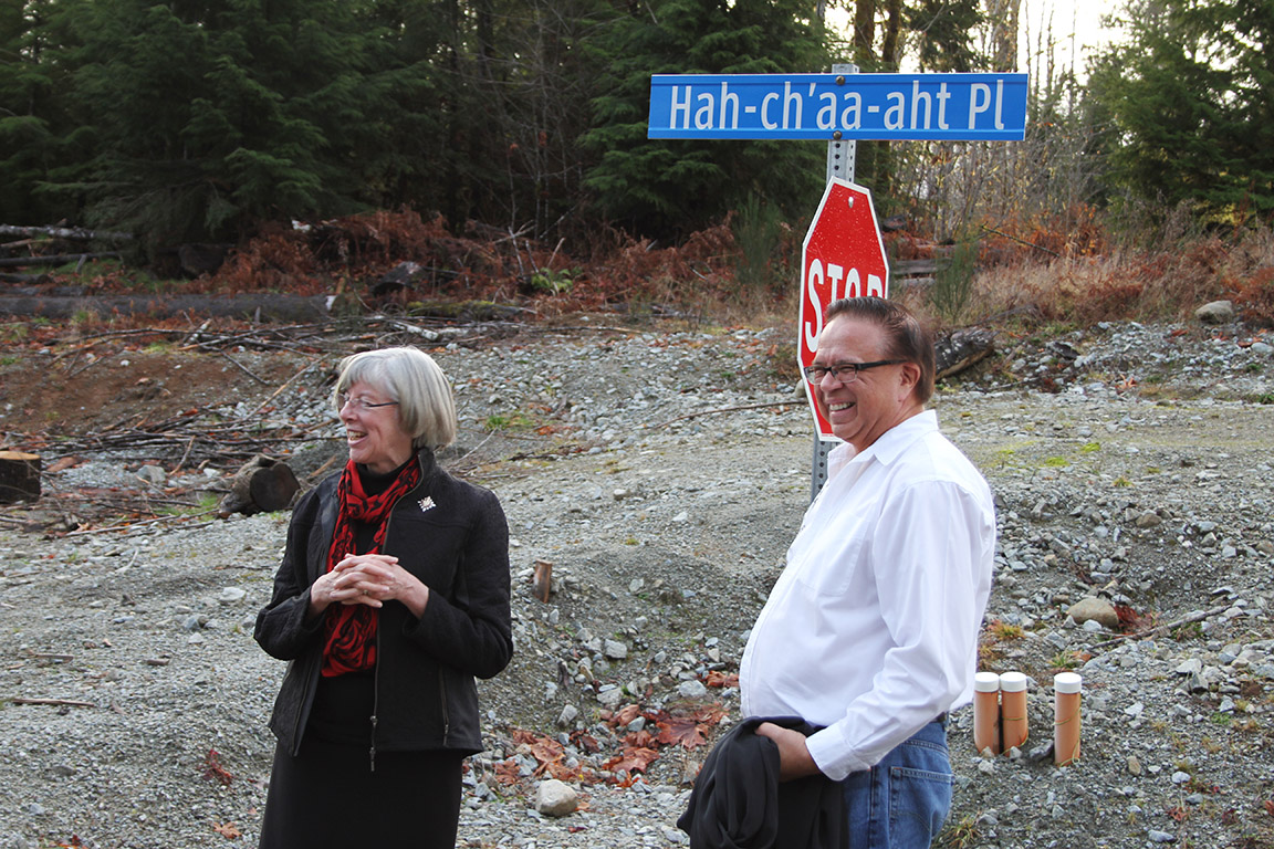 In Hupacasath, among other places on Feb. 3; In Tseshaht for the unveiling of a new subdivision street sign on Feb. 2; and in Ahousaht on Feb. 1.