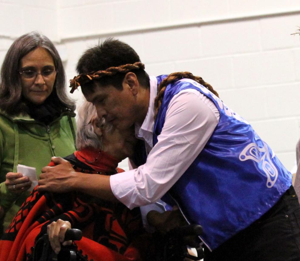 The house of Satiixab (Paul Tate): Memorial Potlach for his late father- Chief Richard Douglas Maquinna Tate & to honor his late Mother Odillia Hayes. Photos by Debora Steel