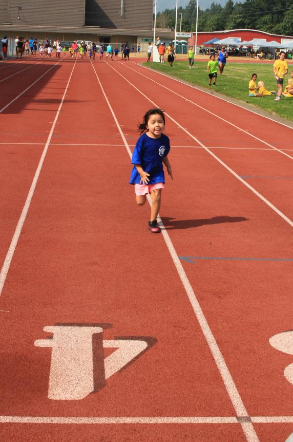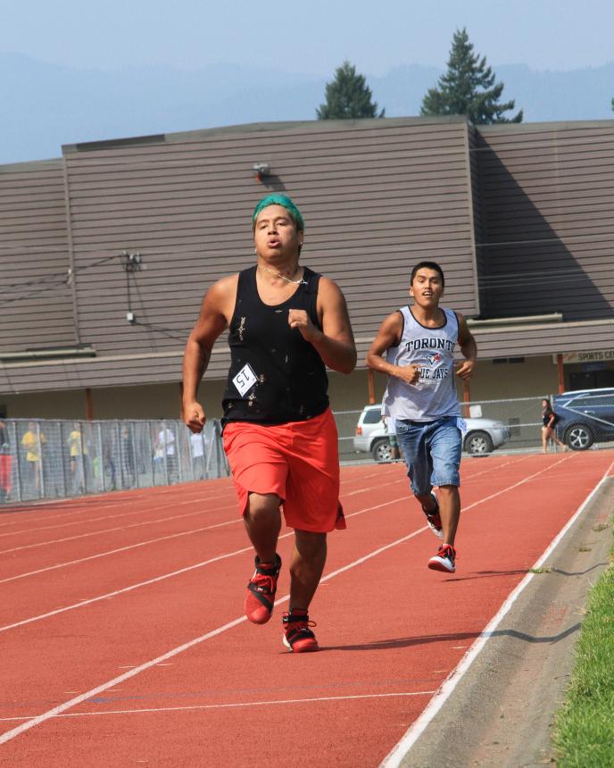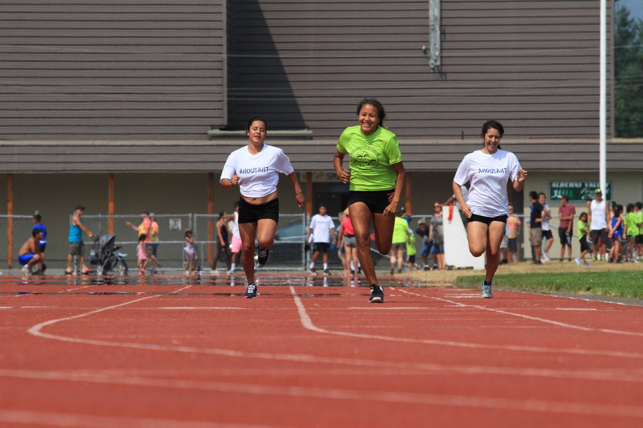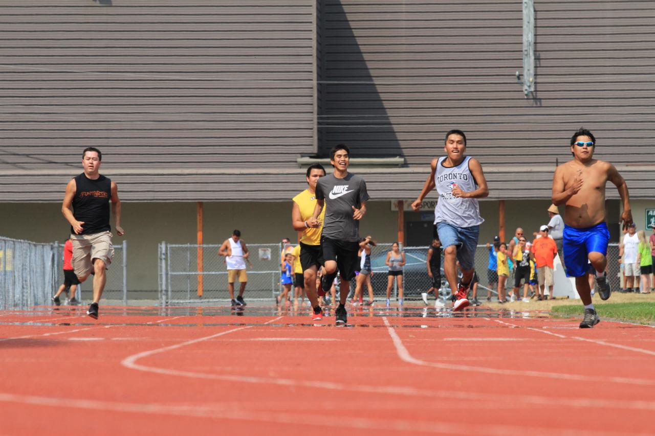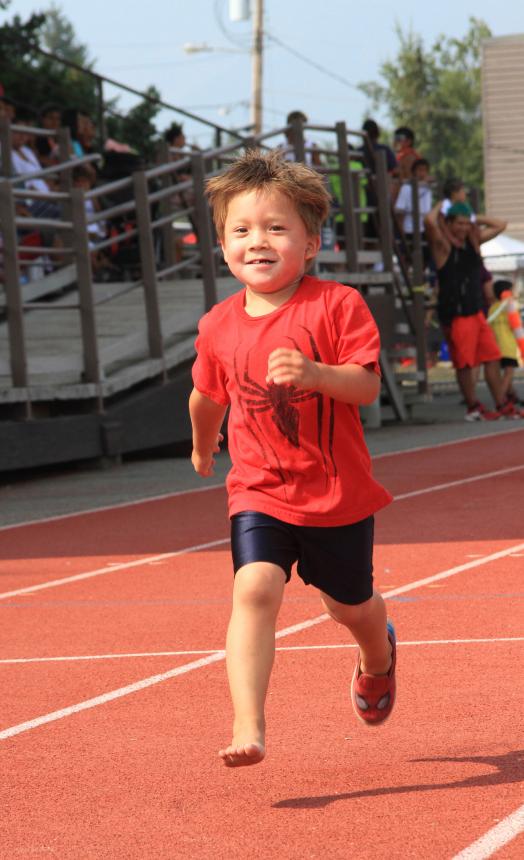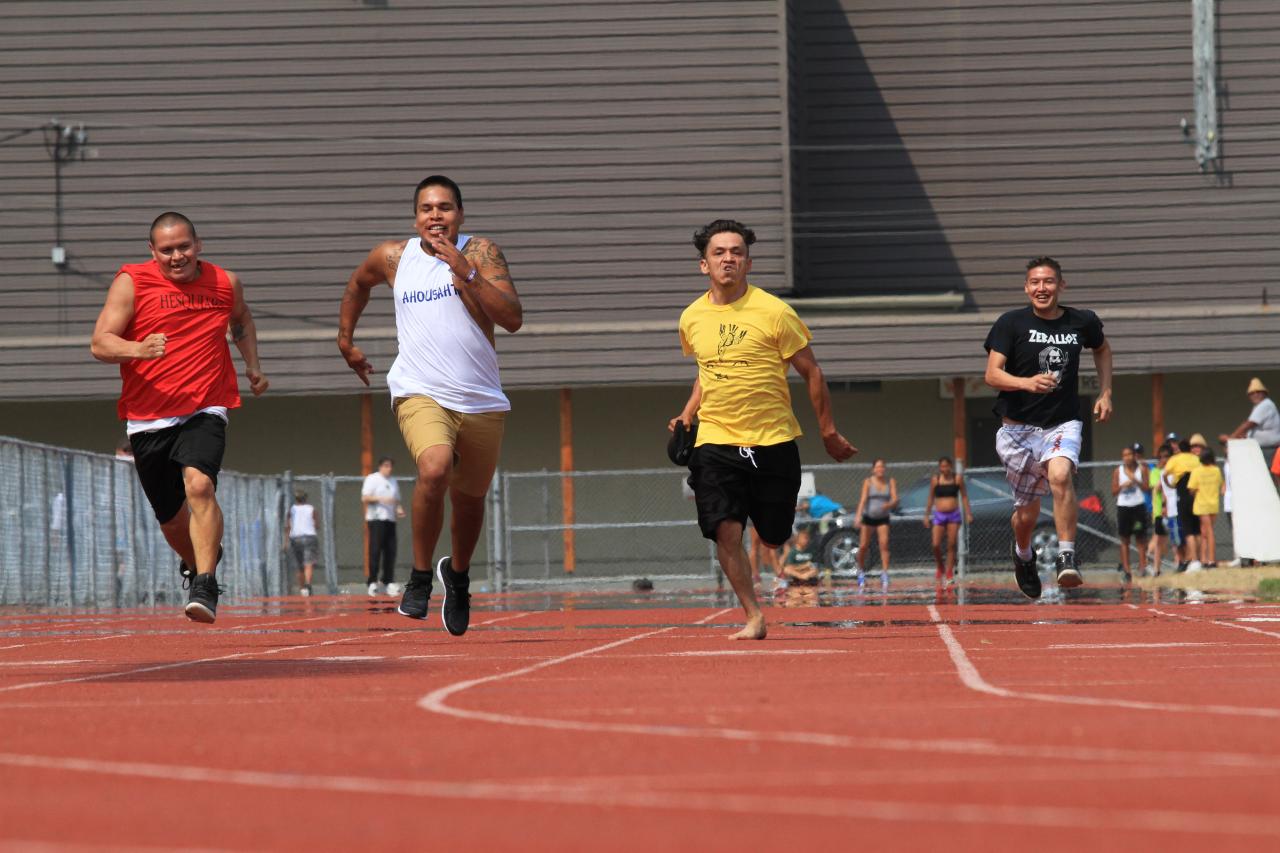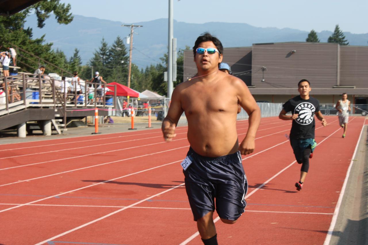 A 30-degree temperature didn't stop the Tlu-piich Games' track events Thursday at Bob Dailey Stadium, including races that engaged ages 4 to over 60. Photos by Eric Plummer and Denise Titian.