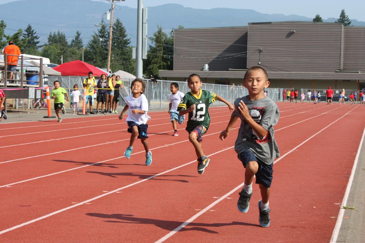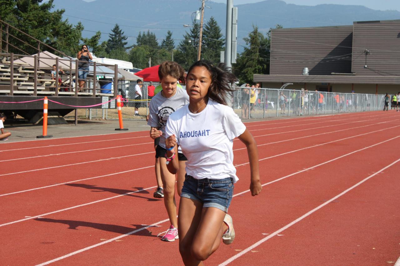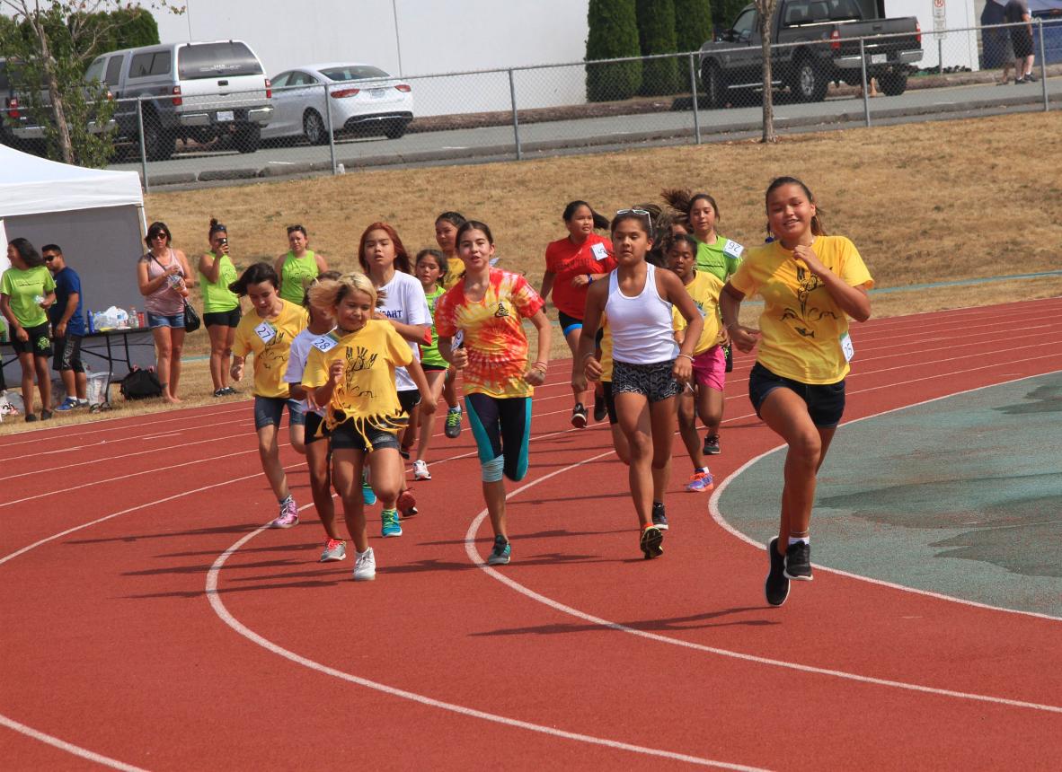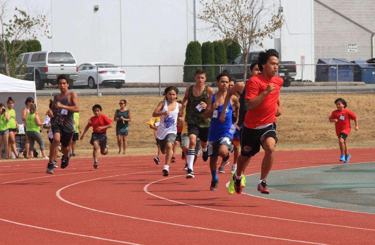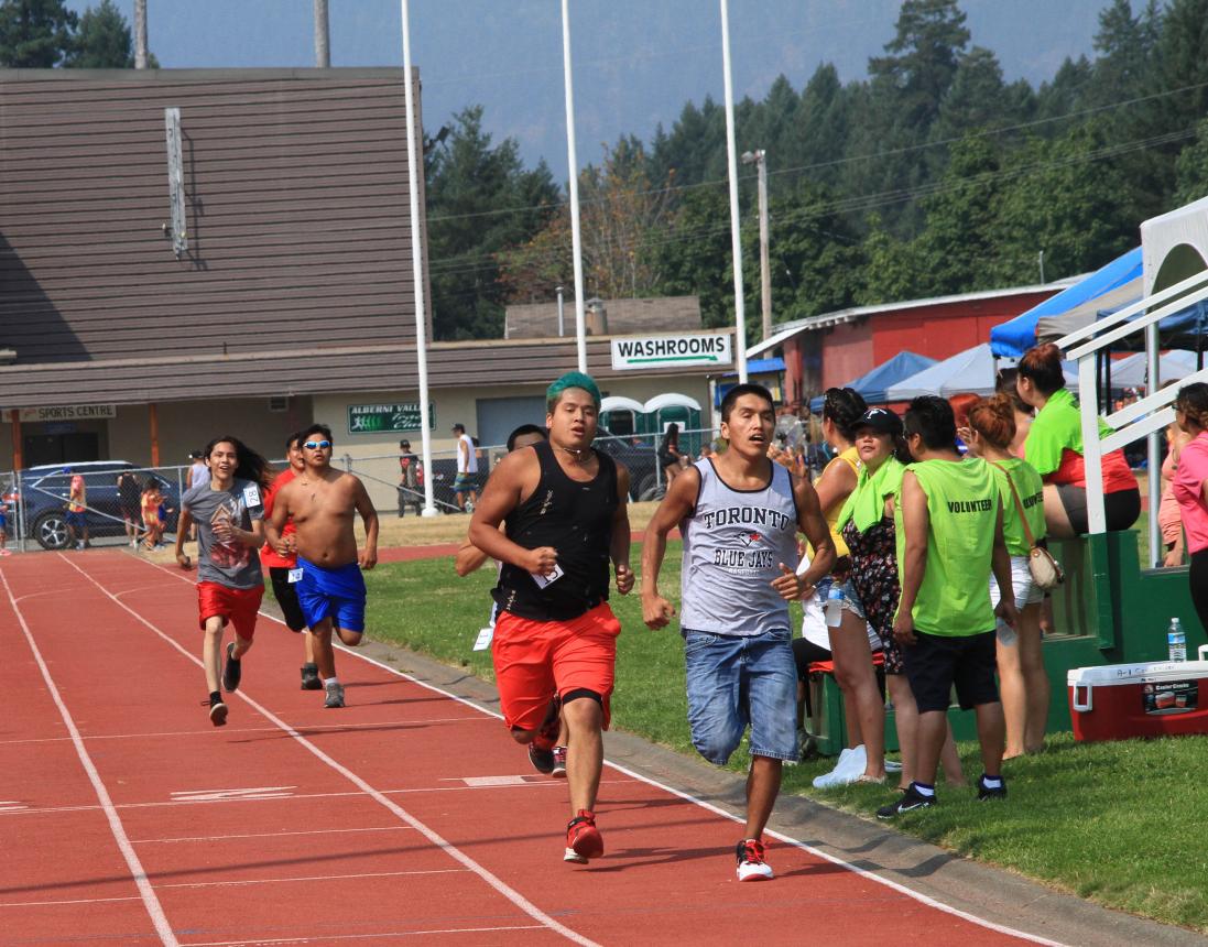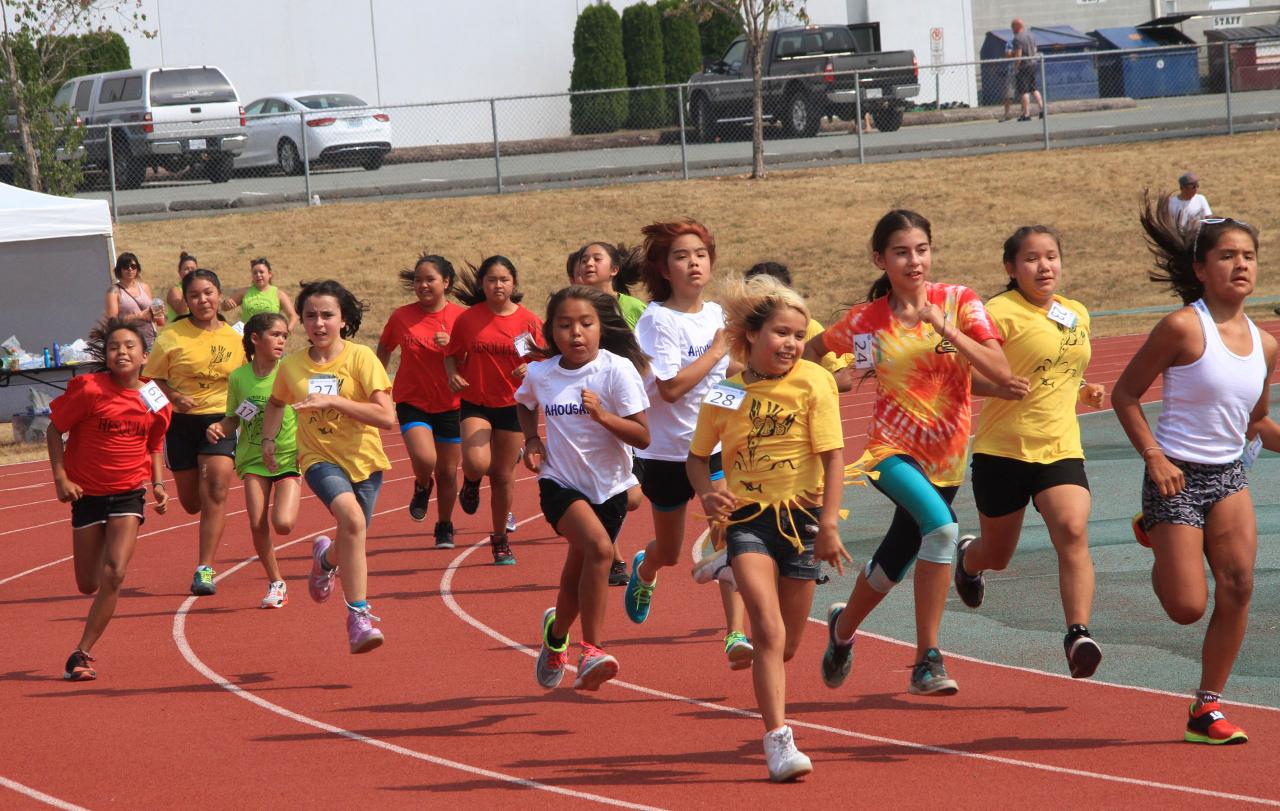 A 30-degree temperature didn't stop the Tlu-piich Games' track events Thursday at Bob Dailey Stadium, including races that engaged ages 4 to over 60. Photos by Eric Plummer and Denise Titian.