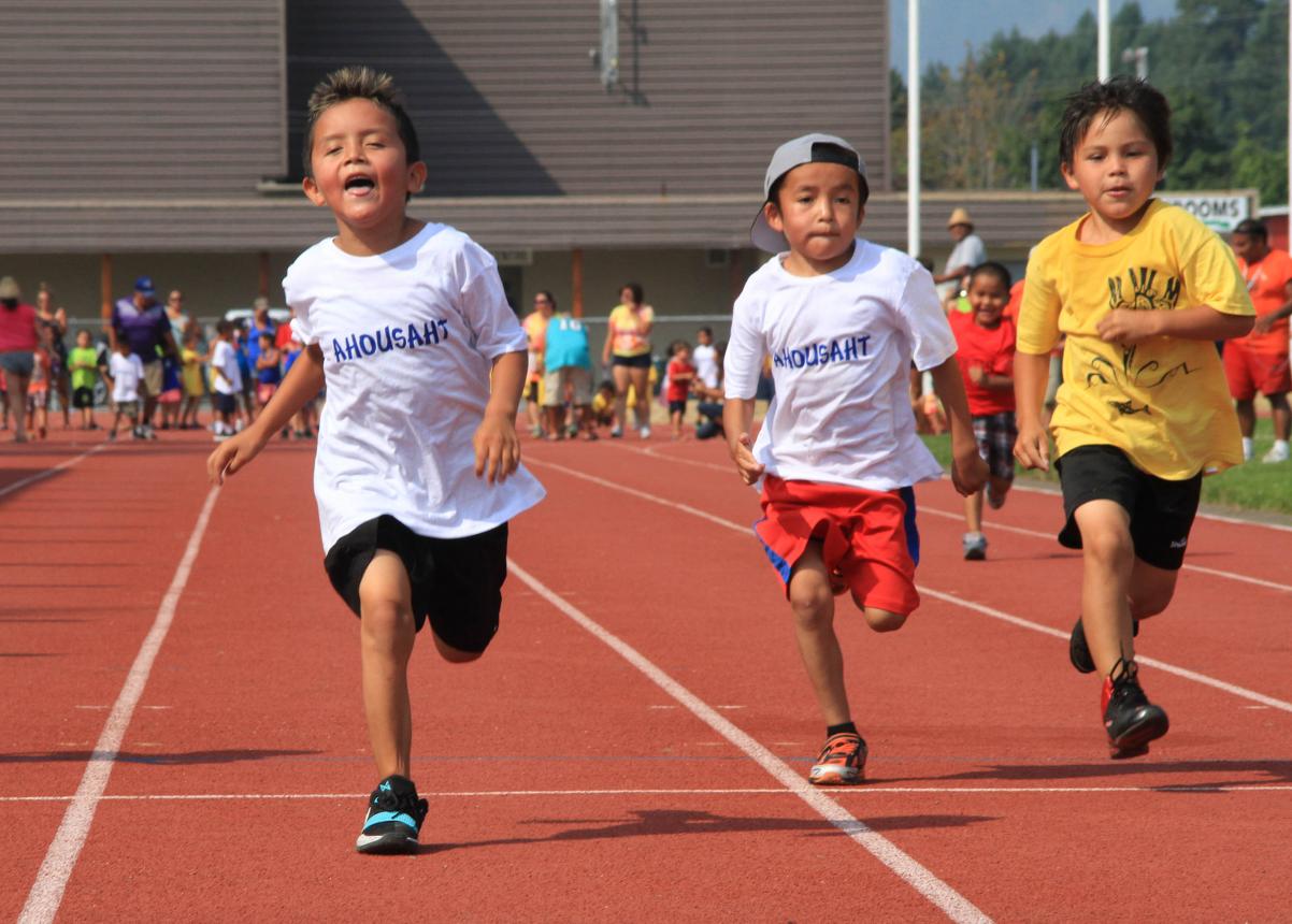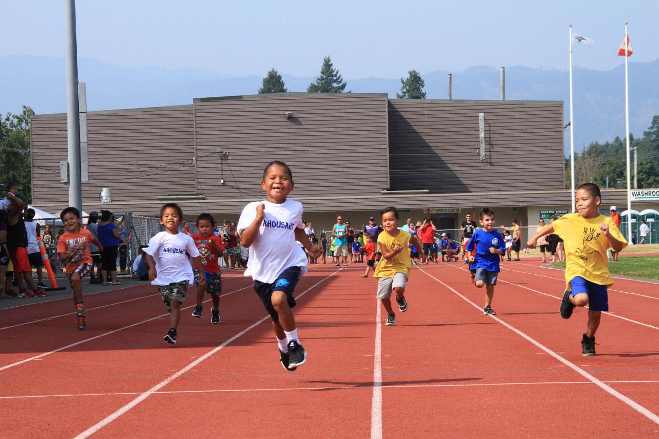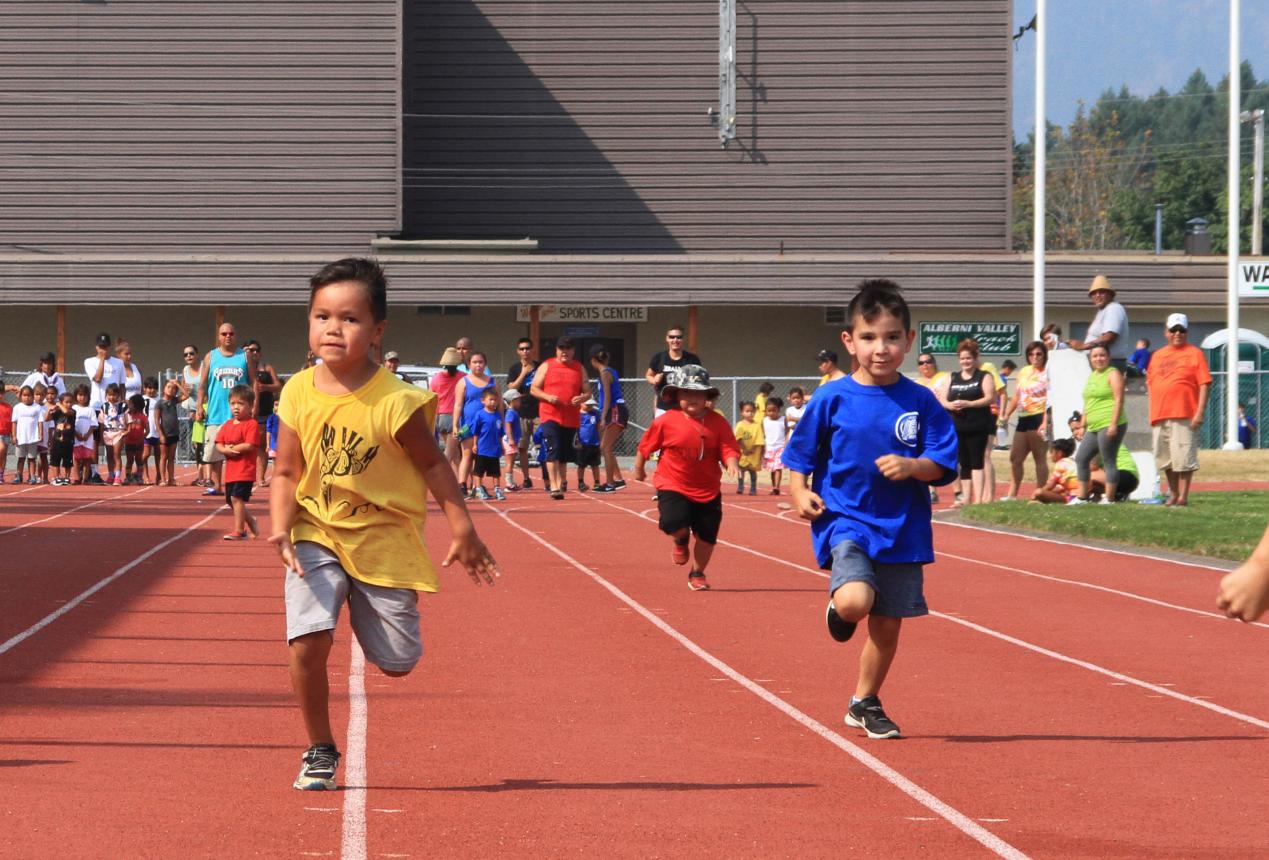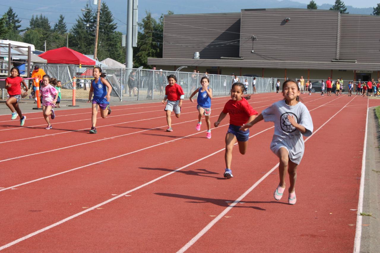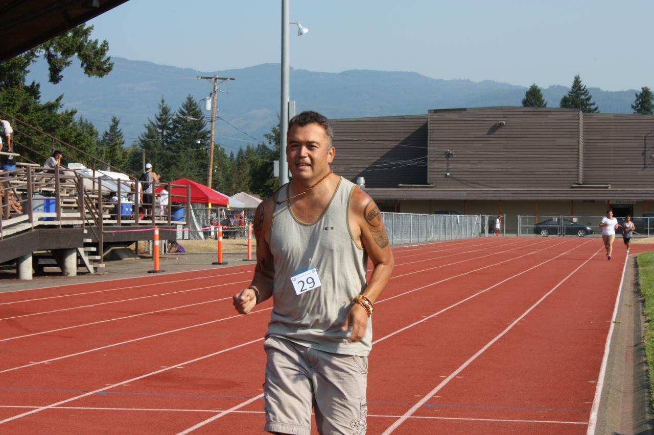 A 30-degree temperature didn't stop the Tlu-piich Games' track events Thursday at Bob Dailey Stadium, including races that engaged ages 4 to over 60. Photos by Eric Plummer and Denise Titian.