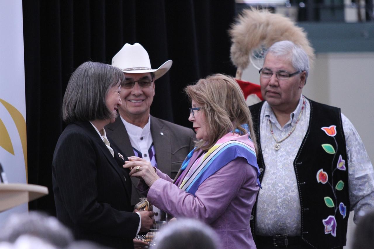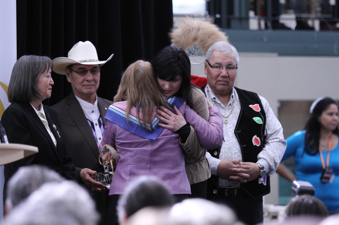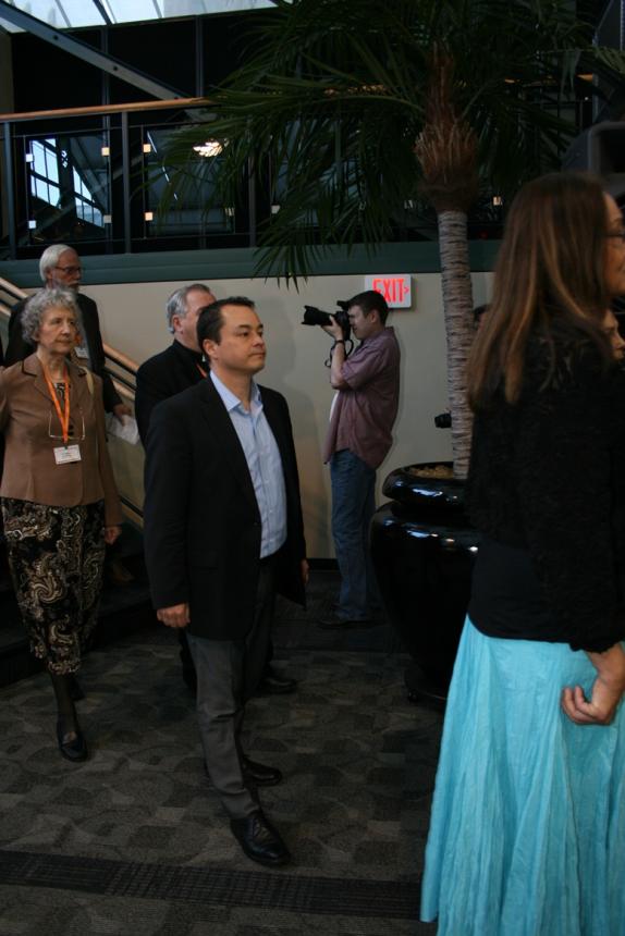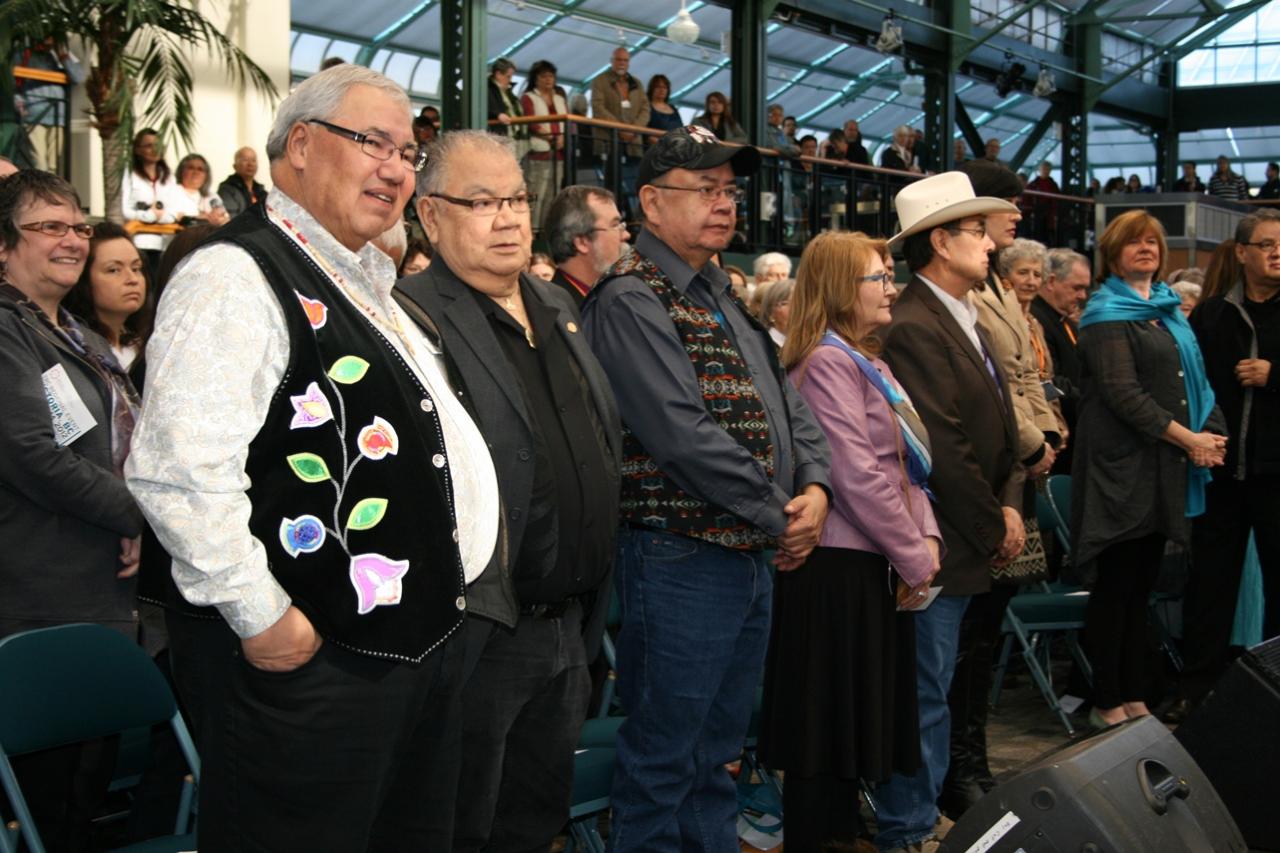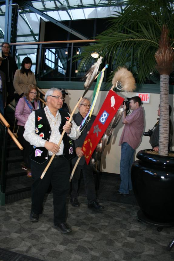 The Truth and Reconciliation Commission set up camp in Victoria holding statement gathering hearings on April 13 and 14. Opening ceremonies included a procession of dignitaries--the three commissioners Murray Sinclair, Marie Wilson and Wilton Littlechild, National Chief Shawn Atleo, President of the Union of BC Indian Chiefs Stewart Phillip, Ed John of the First Nations Summit, and Barney Williams of the TRC advisory committee. Official witnesses, Chatelaine Gwendolyn Point, wife of Lt. Gov. Steven L. Point, and Dr. Andrea Walsh, were also introduced.