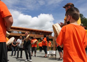 Elders sat in the shade in front of the building by the Somass River as dozens sang in honour of the recent discovery that…