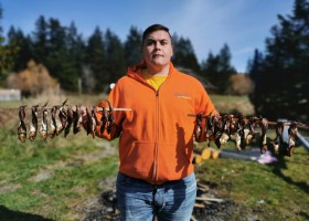 Outside of their Port Alberni home, Hesquiaht elected chief Joshua Charleson and his wife, Letitia, were busy at work preparing herring for their smokehouse.