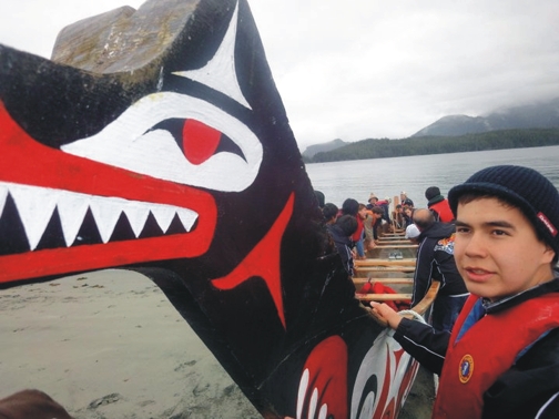 The students also got to try their hand at sea kayaking, paddling in pairs from Meares Island to the Tofino dock, and to take out the traditional Ahousaht canoe, with its animated bow.