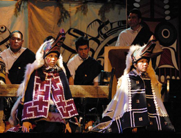 The Gwa’wina Dancers, led by William Wasden Jr., are from Alert Bay, on Cormorant Island, near the northeast tip of Vancouver Island. They are members of the Kwakwaka’wakw First Nation, and their traditional territories cover vast expanses from Smith Inlet down to Cape Mudge.