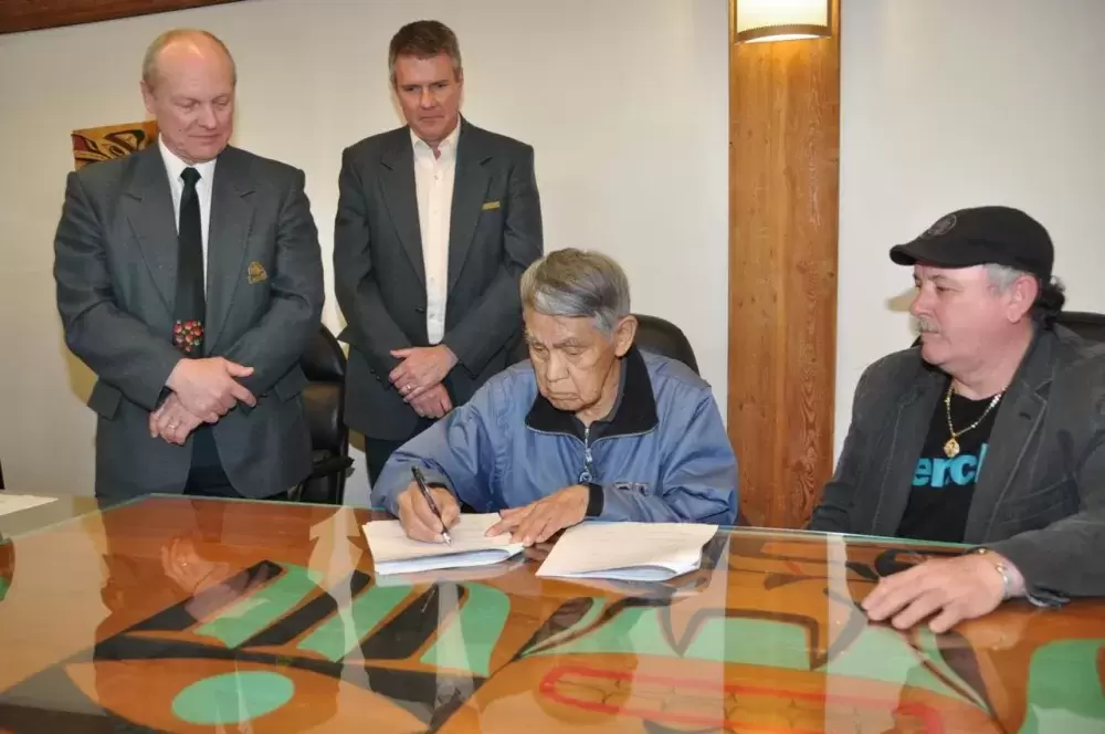 Following the signing, Sam caused a stir when he announced that the document would be known as the Kwatyaat Agreement, after the Creator of All Things, including the Broken Group Islands.