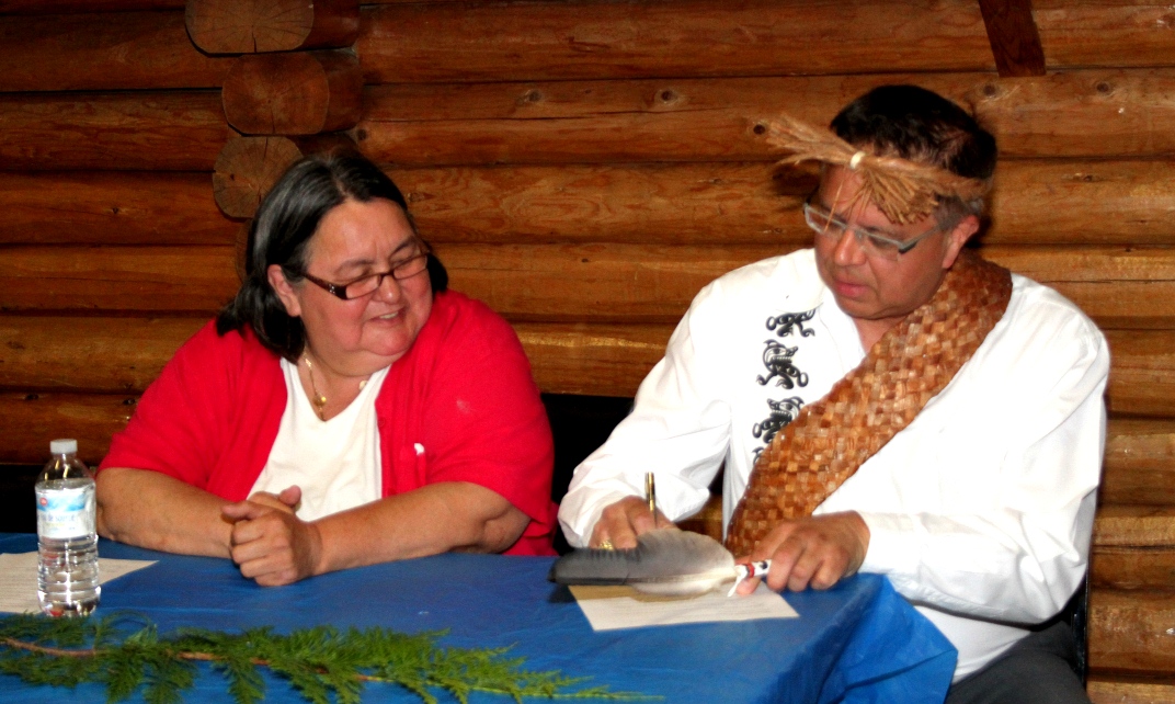 The evening began with a prayer chant by Anne Robinson, and a blessing of the floor with eagle down was conducted by Aaron Watts and Ken Watts. A welcome was provided by Leisa Fred, the young outgoing councillor who chose not to let her name stand for re-election, and Irene Robinson, the Alberni Chamber of Commerce Citizen of the Year.