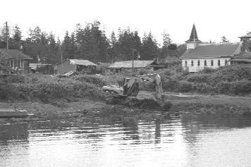 The changes are evident as soon as you arrive in Ahousaht’s harbor. The shoreline has been cleaned up of large debris while a back hoe works away, turning over the mud and cleaning up the shoreline. Many of the most dilapidated houses have been torn down, opening up space around the over-crowded old village site.