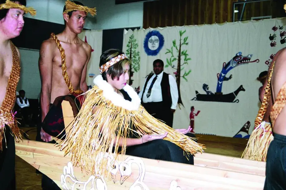 Linus Lucas, the eldest son of Kla-kisht-kei-iss and Topat, started the party first with a chant. Kla-kisht-kei-iss then asked permission from Walter Thomas to conduct their family business in Tseshaht traditional territory. Kla-kisht-kei-iss acknowledged and thanked Thomas with a gift of money.