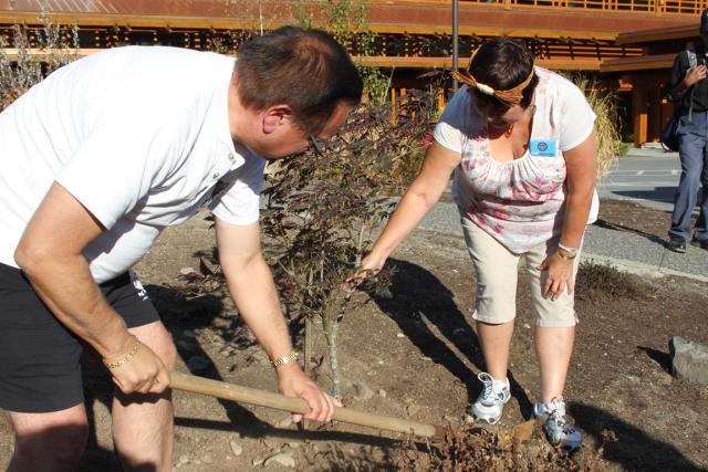 About 50 people participated in the Port Alberni event. They walked from NTC to the Tseshaht administration building where Foxcroft and Tseshaht Chief Councillor Hugh Braker planted a tree, grown from a seedling by Braker’s parents Pauline and Tinus Braker.