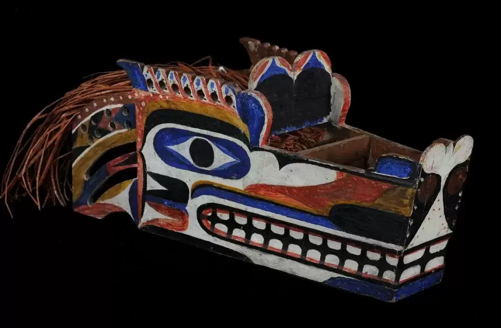 The auction-house listing certainly acknowledges the importance of the masks. “19TH C. Nuu-chah-nulth Headdress Used Many Times in Sea Serpent Dance, Representing a Female - Ucluelet, B.C. Pasted [sic] From One Generation to the Next - Family Provenance Available 21" L. 10" W. Good Condition”