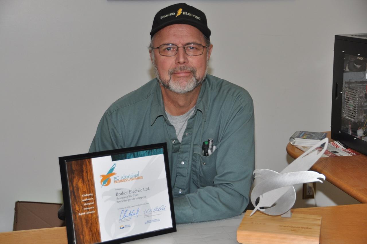Waa-wee-na Cliff Braker, owner of Braker Electric Ltd., received the award at a banquet held Nov. 26 at the Hyatt Regency in Vancouver. While he wasn’t the biggest business to be honoured, Braker definitely had the most enthusiastic rooting section.