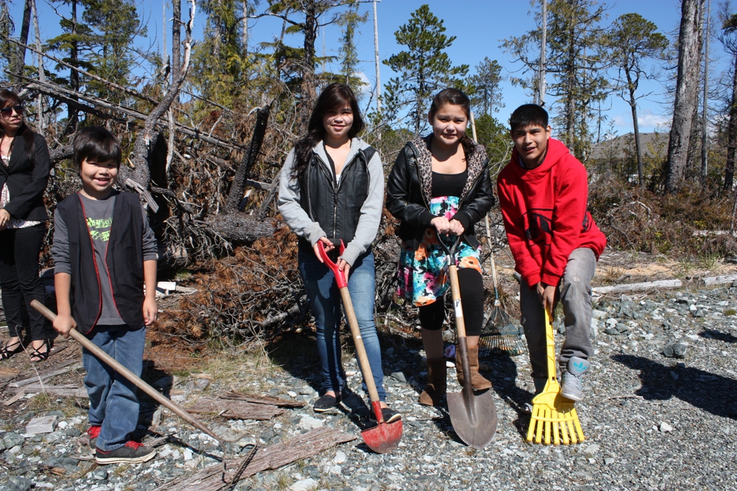 The Seitcher family gathered at Tyhistanis on the morning of April 15. Sisters Ina Seitcher and Pearl Dorward stood arm-in-arm with their grandchildren and Ray’s wife Cathy as Tla-o-qui-aht elders offered prayers and blessed the ground.