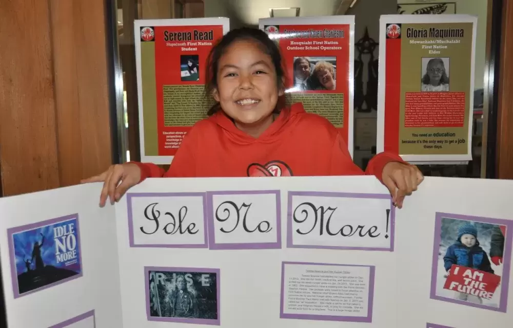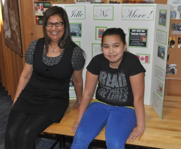Jasmine Charles, 12, and Evelyn Charleson, 9, each chose the Idle No More movement as their topic. Each child has also taken an active part in the movement.