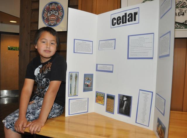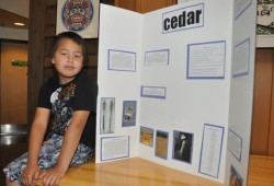 This week, the Heritage Fair stand-up displays, minus artifacts and regalia, are on display in the school foyer. On Monday, Ha-Shilth-Sa spoke with eight of the 10 student hopefuls. Two of the entrants, Justin Nookemus (Cedar) and Hector Little (Salmon), are re-working their displays.