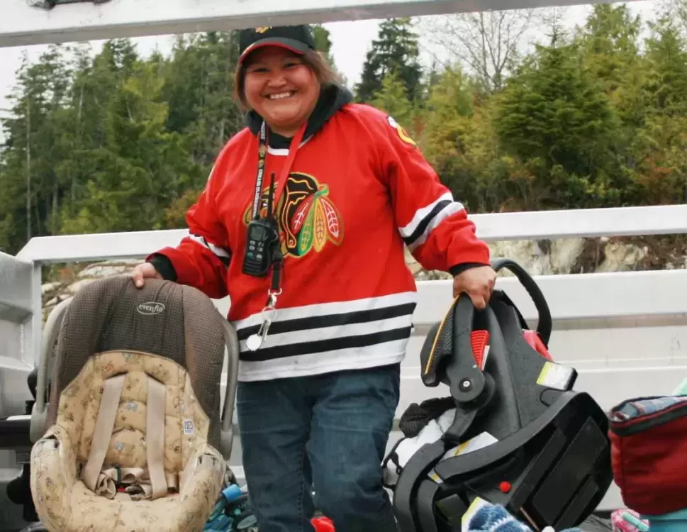 Marceline Jack works as the assistant manager of Ahousaht’s Transfer Station. Three days a week she goes from house-to-house collecting trash. On alternate days – Tuesday and Thursday – she sorts the trash, weeding out the recyclables and sorting the materials for the monthly barge trip out of the community.