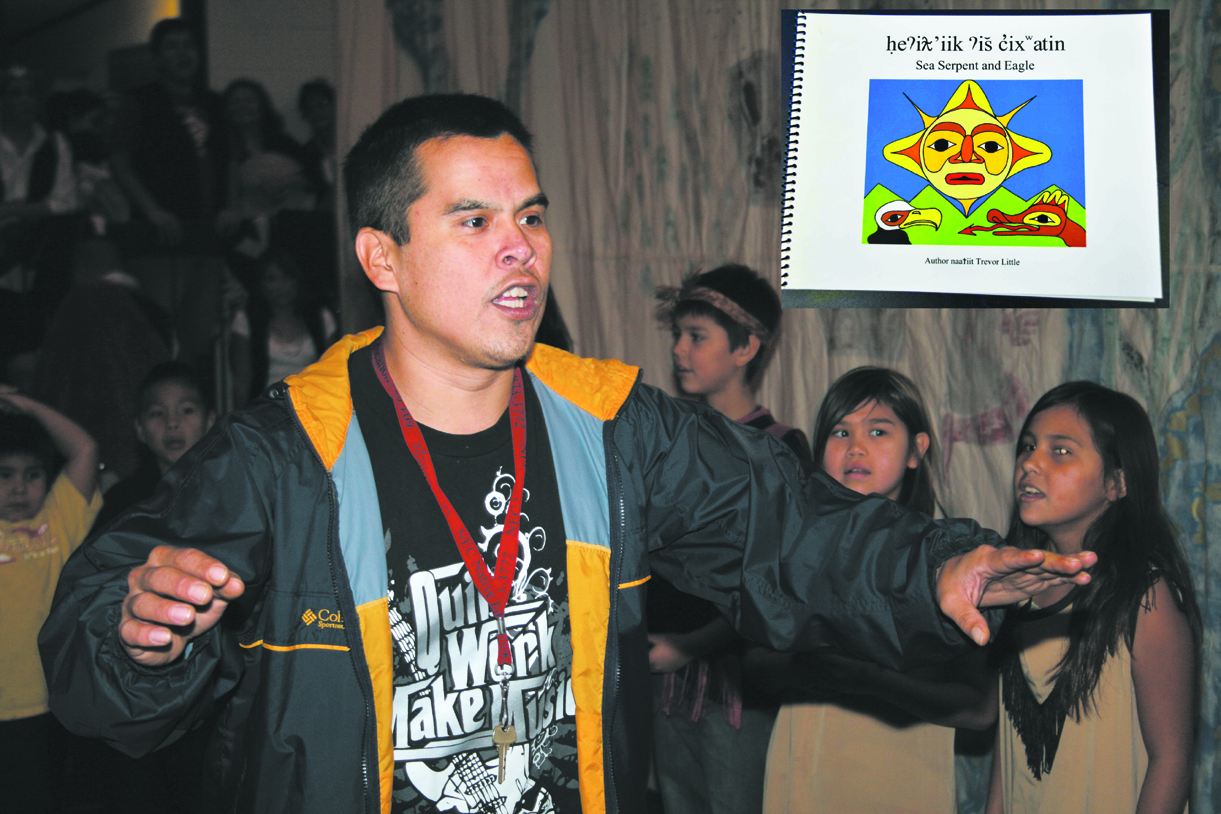 The project is titled “Eagle and Sea Serpent” and is based on an original tale by Tseshaht’s Trevor Little. After sharing his tale orally before a variety of audiences, Little partnered with Lena Ross to turn the story into an instructional book, told in both English and Nuu-chah-nulth.