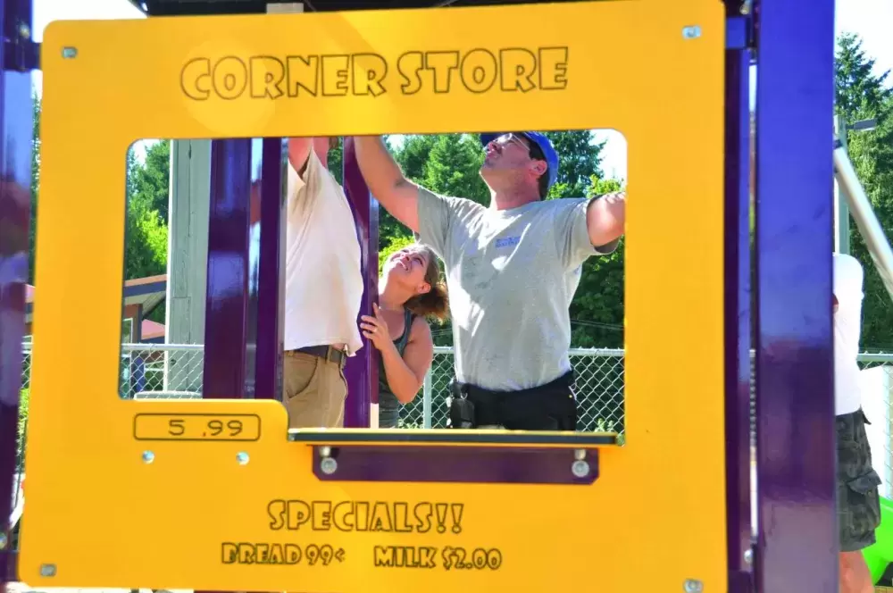 Jones said supervising volunteer crews is fairly standard when installing school and community playgrounds, although most volunteers don’t usually show up in police uniform.