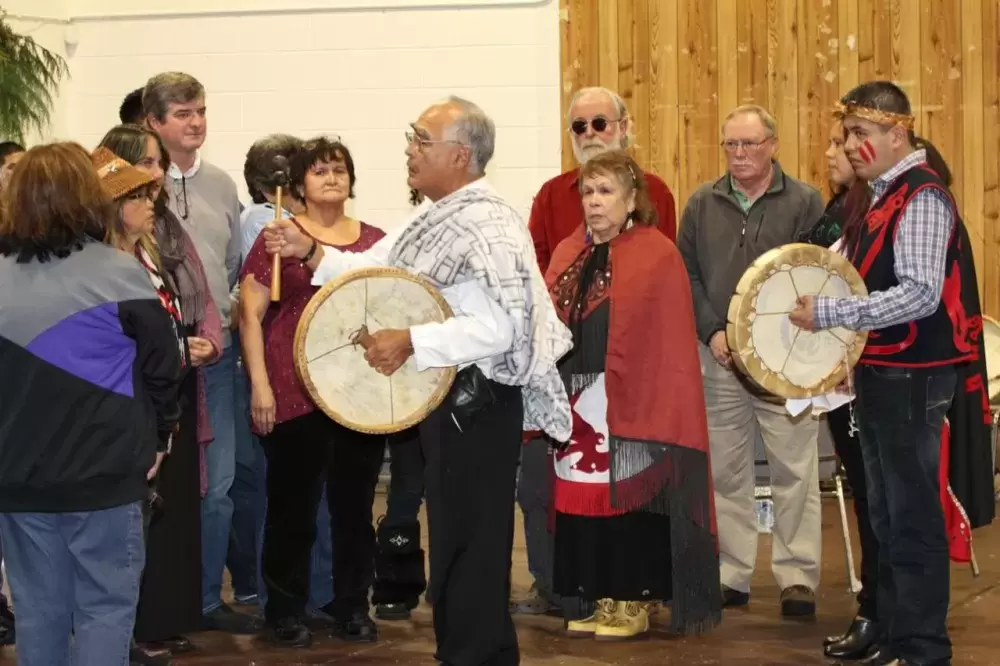 After a chant by Reg Sam, the Nuu-chah-nulth Education Workers and those associated with Eileen in the Nuu-chah-nulth Tribal Council education department, were first to present.