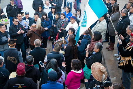 Supporters gathered on the steps of the Vancouver Law Courts today as five Nuu-chah-nulth Nations headed back to court in their long-standing Aboriginal commercial fishing rights battle with the federal government.