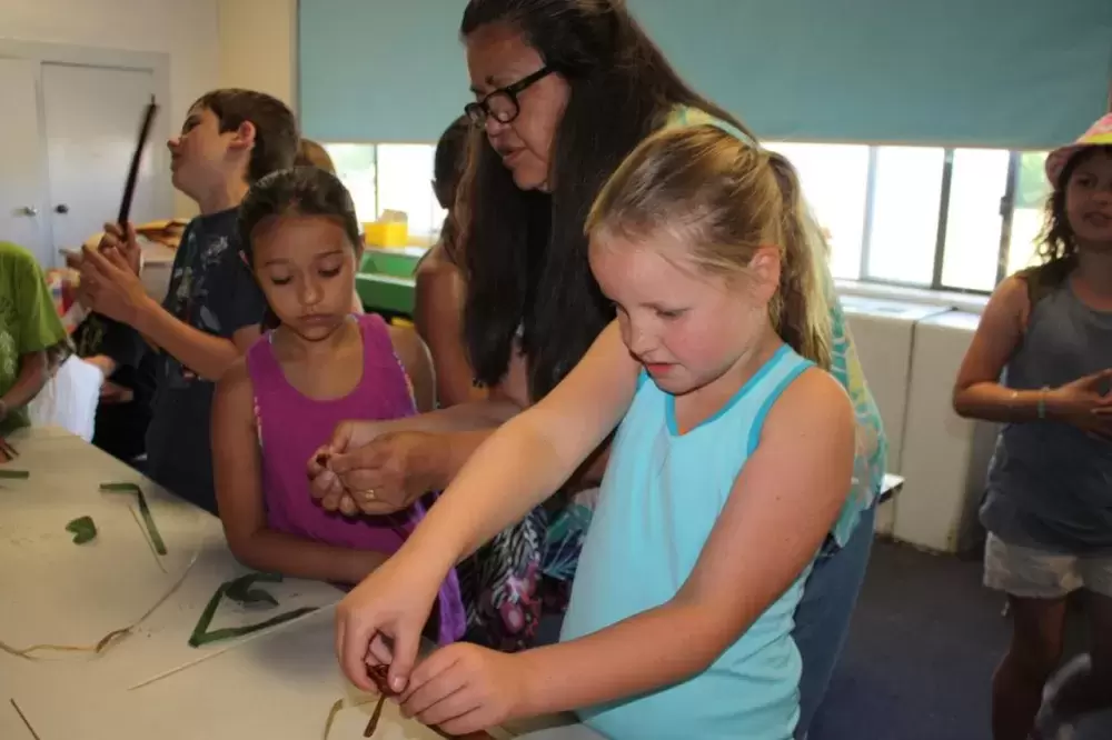 Presenters were invited in to share their cultural knowledge with students that day. Irene Robinson of Tseshaht was there to share stories. Other Nuu-chah-nulth Education Workers came to support Samuel and help out with bannock-making, teaching children how to make cedar bark roses or dream catchers, and one of his friends made an appearance via Skype.