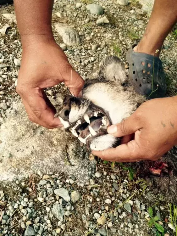 Once the cougar was euthanized, community members gathered to take a look, and the children were taught some cougar safety basics. Maintain eye contact, if you encounter a cougar. Face it and make yourself square to it. If it moves around you, move your body around with it, not just your neck. Slowly back away from it while talking to the cougar. If it makes a move towards you, act aggressively by showing your teeth and making yourself look big and if it keeps coming throw things at it, stand on something like a stump to make yourself look large and further up the food chain. And if it attacks, fight with all your might, hitting it in the eye or the nose where it is sensitive.