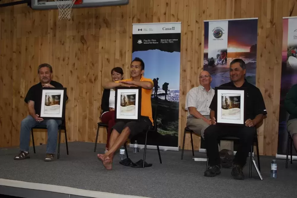 At the celebration, dignitaries including Huu-ay-aht Tyee Ha’wilth Derek Peters, Ditidaht elected Chief Jack Thompson and Pacheedaht Councillor Jeff Jones were seated on the stage with Parks Canada Chief Executive Officer Alan Latourelle.