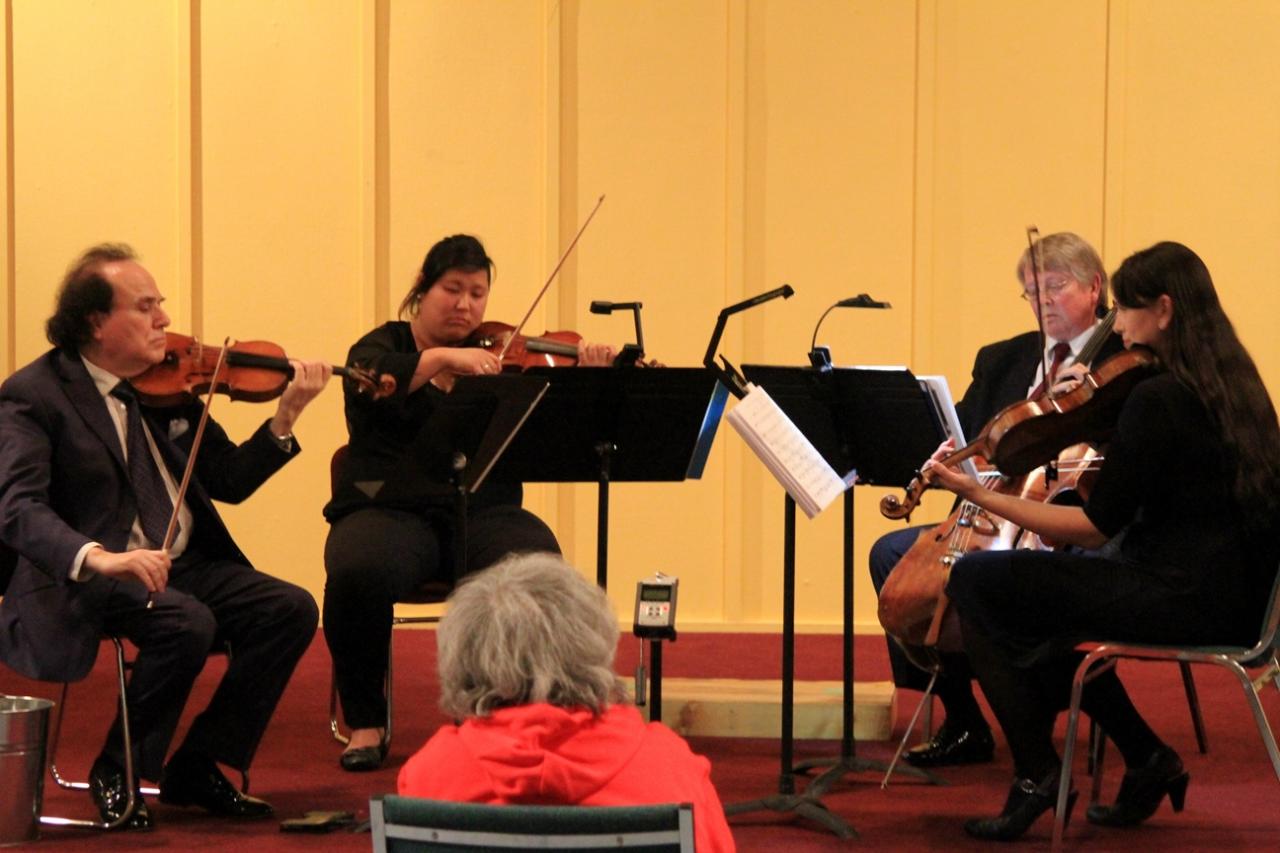The quartet — violinists Pablo Diemecke and Shima Takeda, cellist Larry Skaggs and, on viola, Elizabeth Massi — performed four movements of the concerto, including an ending democratically selected by vote of the audience. There were three possible endings, titled Salmon, Raven and Kermode Bear.