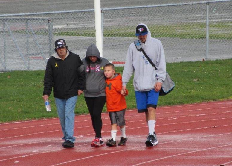 On a cold rainy day Feb. 28, about 100 people came out to join in the suicide prevention walk at Bob Dailey Stadium in Port Alberni.
