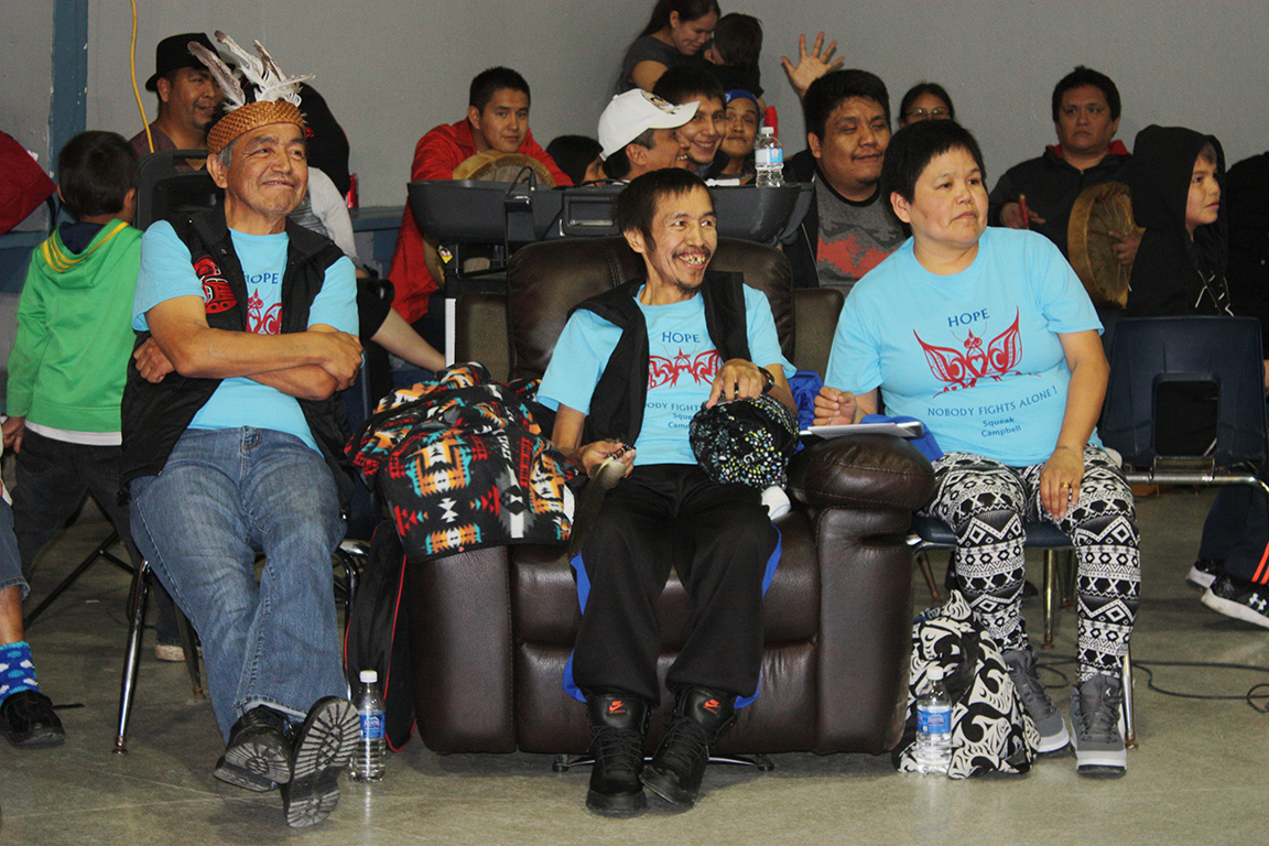 The celebration ended with a powerful healing song. Squeak’s chair was moved to the centre of the room and he was surrounded by his loved ones as Ahousaht drummers sang for him and his family.