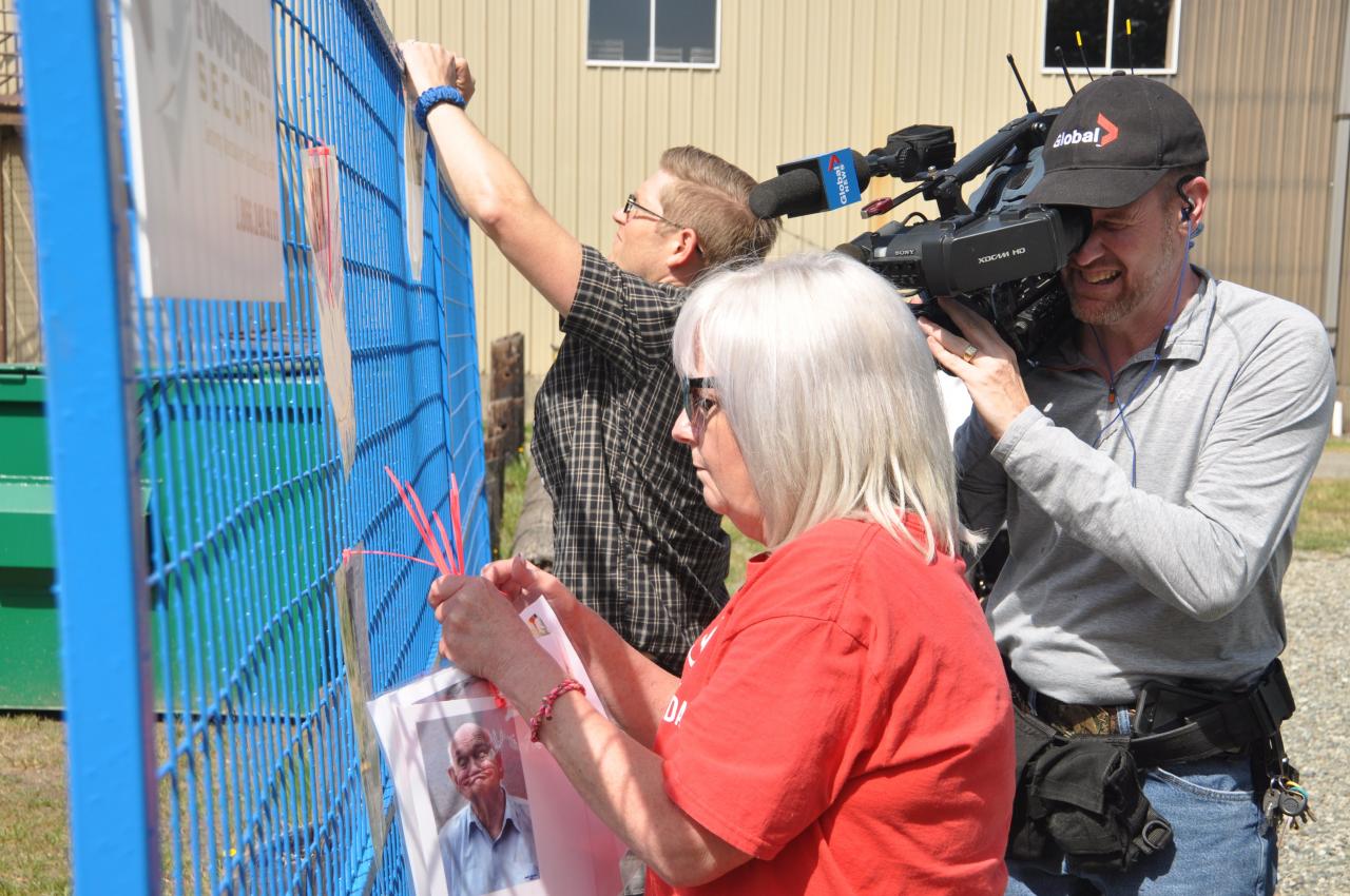 As part of the exercise, ADSS teacher Dan Mott and youth support worker April McLean brought three young Nuu-chah-nulth students from the Step Up Program. Their job was to zap-strap pictures of “missing loved ones” to the temporary fence set up around the HUSAR site, as would be expected in the aftermath of a disaster.