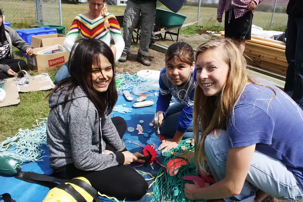 Some of the collected plastics went to the school where Tofino artist Peter Clarkson guided the students in the creation of an ocean mural.