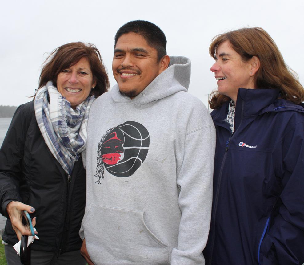 Fisherman Ken Brown, one of the rescuers from Ahousaht, stood nearby with his wife Janey and their new baby daughter Lily.